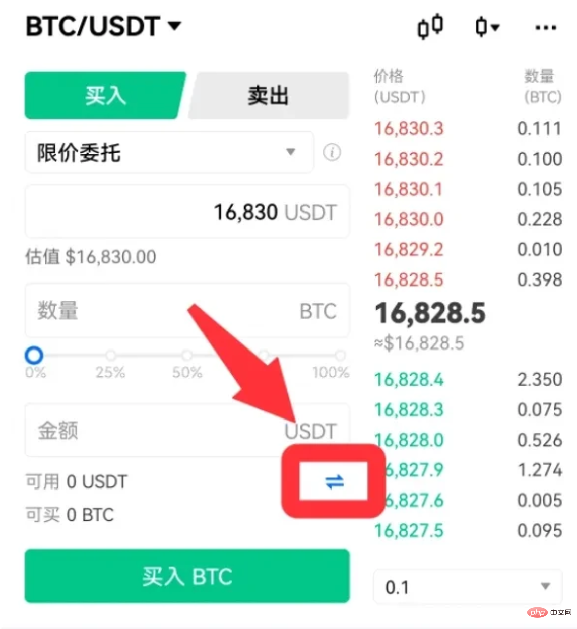 然后,在首页下方点击“交易”,进入交易页面,再次点击“交易”,选择“现货交易”。点击页面上方的交易对,在搜索框输入你想购买的币种,比如BTC,选择“现货”,并点击相应的币对BTC/USDT(如果已经在当前币对交易页面,则可以忽略这一步)。