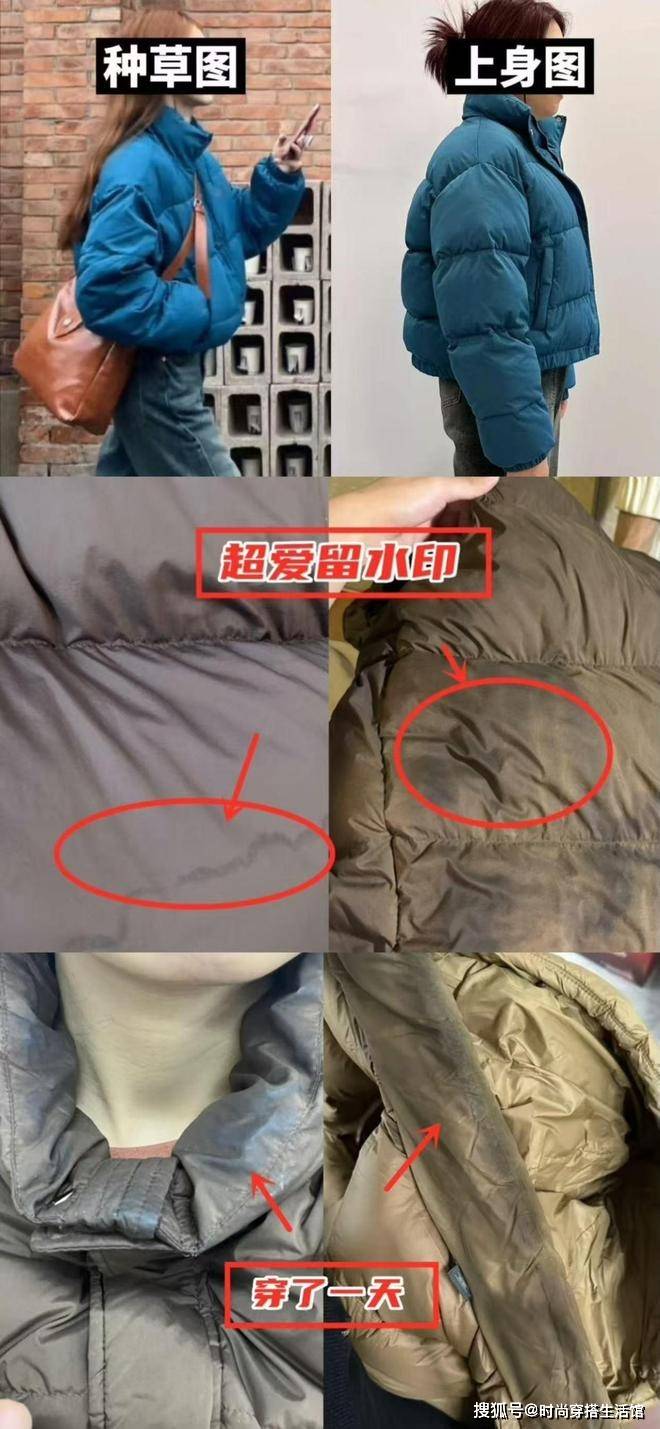 前段时间网上大火的“泡芙羽绒服”也是买一次、后悔一次的存在。上网一搜,热度过后全是对泡芙羽绒服铺天盖地吐槽: 衣领容易穿出“油印子”、沾水或清洗后易留下水渍……更何况泡芙羽绒服比普通羽绒服更蓬松,头大、脖子短、上身胖的姐妹穿上后一秒变“水桶”,谁买谁后悔!
