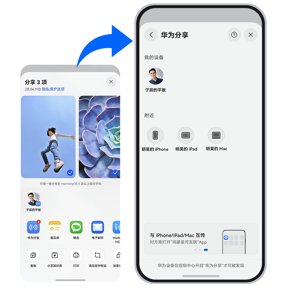 据了解,该应用的 iPhone 与 iPad 版本已于 11 月 20 日先行上线,而 Mac 版本近日才上线,意味着华为已实现与、平板、电脑的“三端全面互通”,为用户在不同品牌设备间进行数据交换提供了新的官方选择。