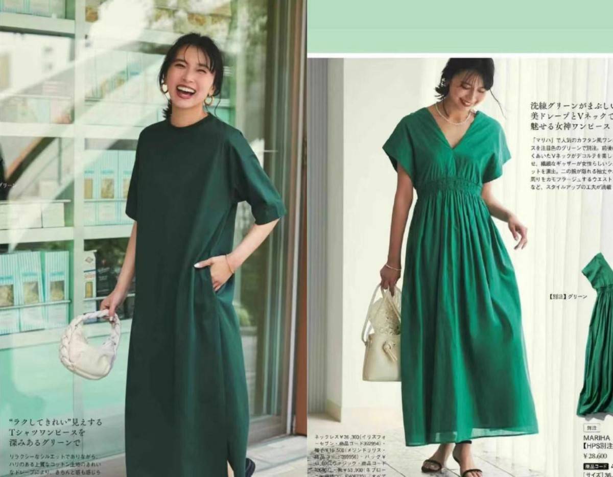 选用绿色的西装裤,可以搭配黑色上衣,呈现出干练又有型的造型。若是选取了绿色的印花连衣裙,也会充斥着田园的风情。