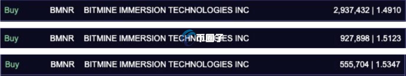 与减持 Coinbase、Robinhood、Block 形成鲜明对比的是,方舟反手买入 4,421,034 股以太币储备企业 Bitmine Immersion Technologies (BMNR),总价值约 1.75 亿美元。这个操作确实让人有些意外。