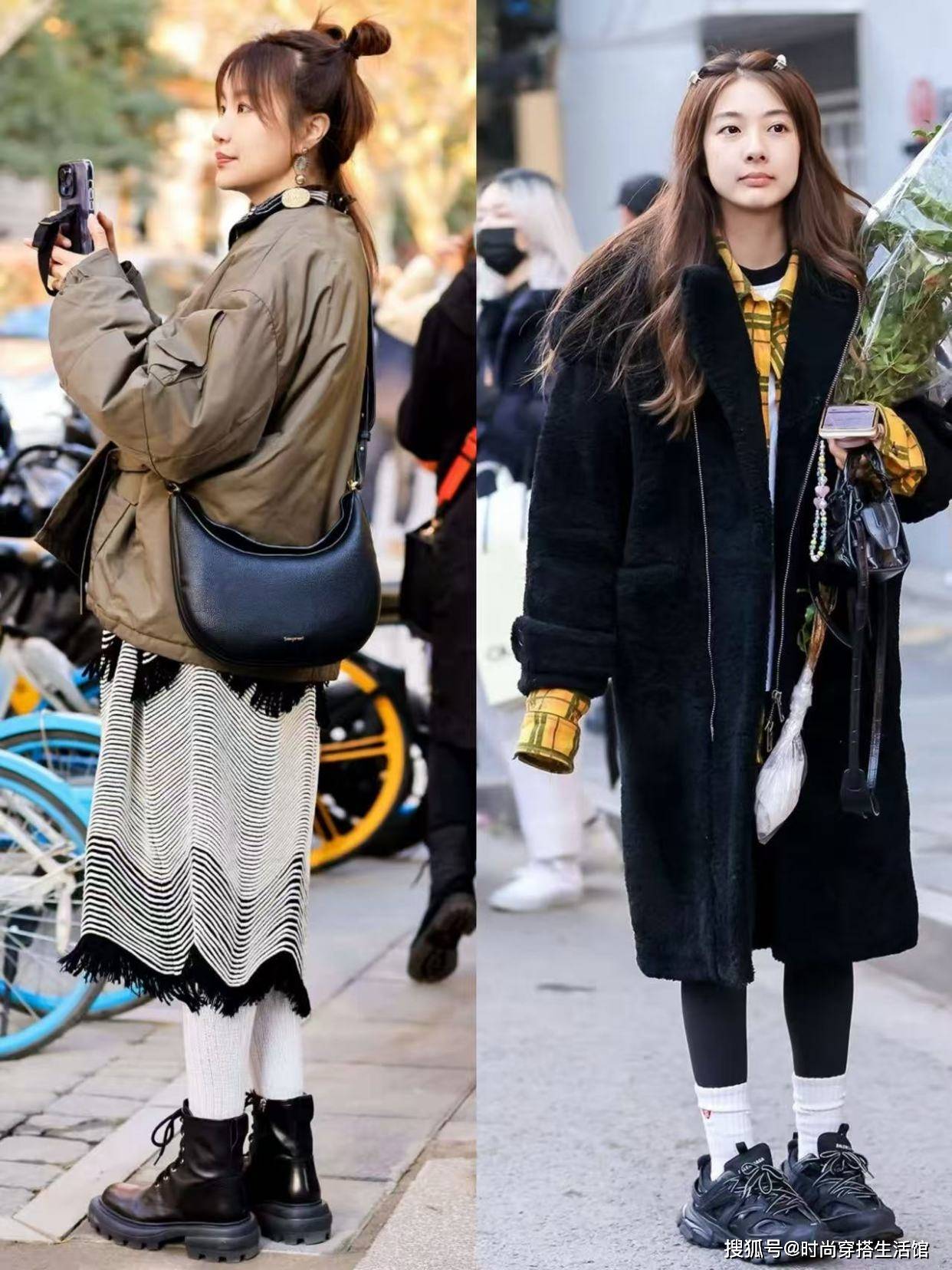 ②选择外套叠穿内搭,丰富造型层次感