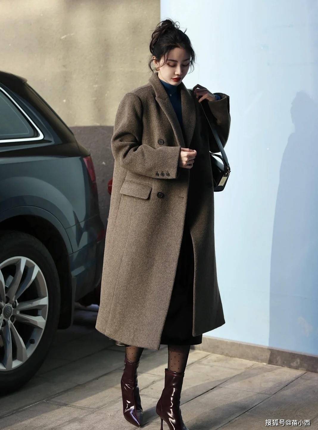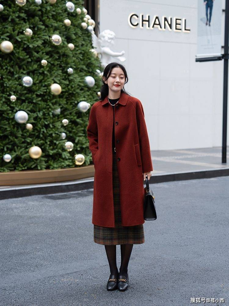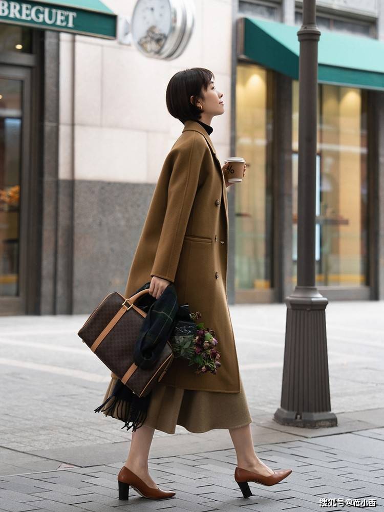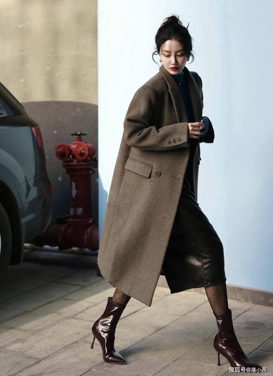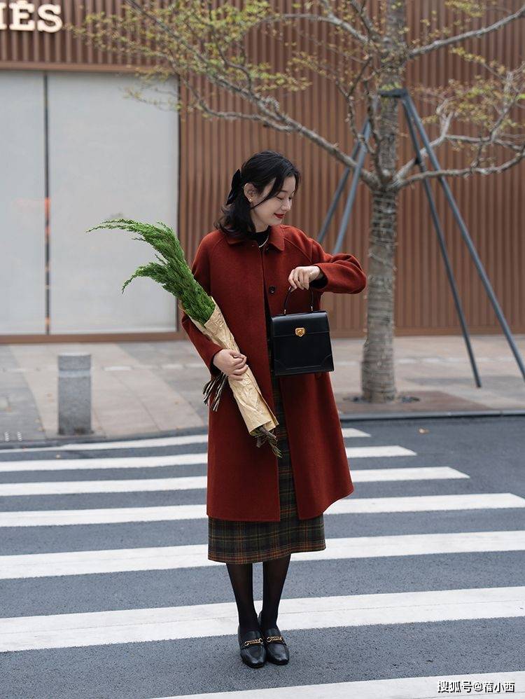 裙子的选择也有讲究,别只顾着好看忽略实用性,比如毛呢半身裙就是冬季“安全牌”,挑选过膝不过脚踝的长度,百褶的版型更灵动自然,穿上没有紧绷感,哪怕身高一米六,也能穿出女王范,搭配棕色的大衣,高级感拉满。