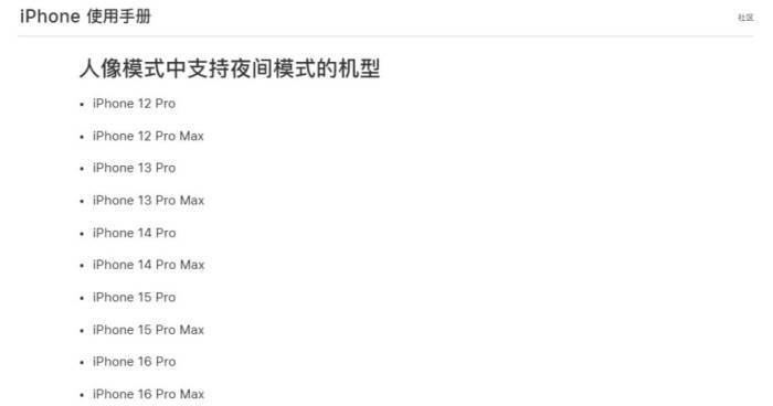 苹果官方支持文档显示,自 2020 年的 以来,所有 Pro 机型均支持“夜间模式人像”功能。但当前文档的兼容设备清单截止至 iPhone 16 Pro 系列,未包含今年 9 月新发布的 iPhone 17 Pro,这一缺失引发了该功能被取消的猜测。