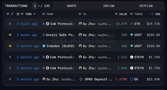 社群观察到,一个链上地址被标记为与前OPNX创办人Zhu Su有关联,该地址通过CoW Protocol将375.2万枚Gear兑换成了约14.5ETH。
