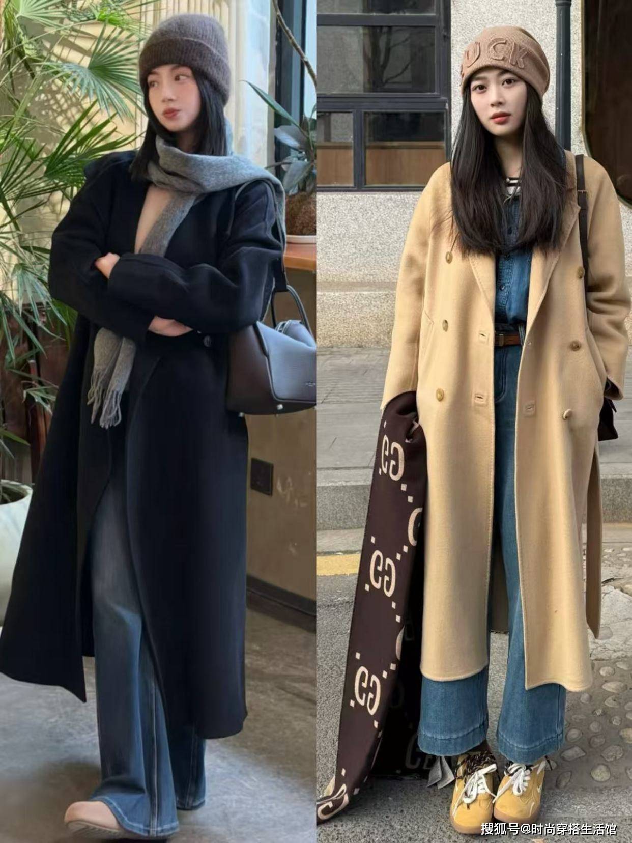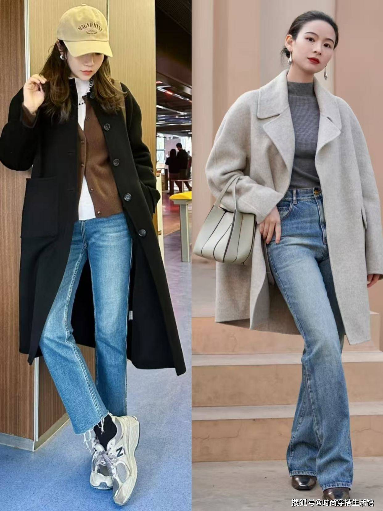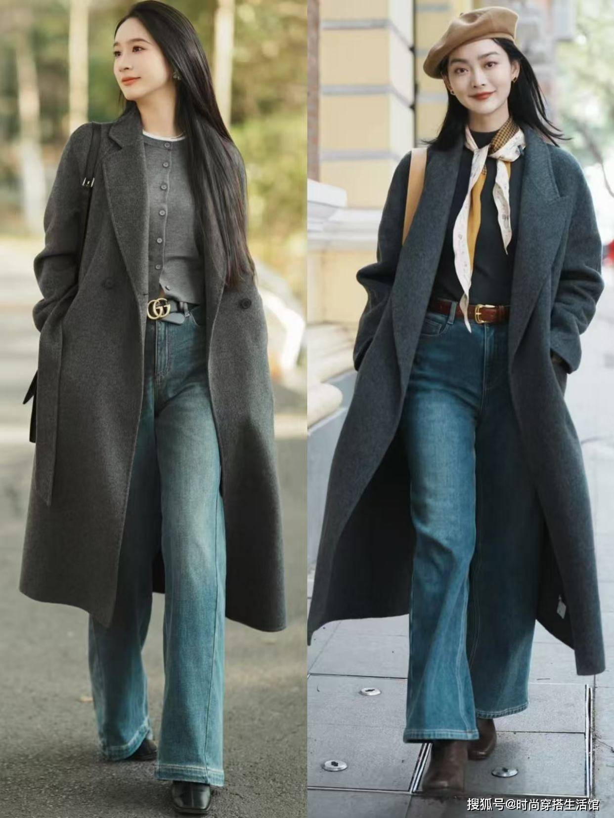 冬天选择穿大衣本身就非常的遮肉和显瘦,不管是长度、面料和版型这些都是最佳的选择,下身我们选择搭配经典的牛仔裤,更是裤子中的“常青树”,完全不用担心会挑剔身材和人群,尤其是挺括的面料更能修饰身材,完全不用担心会贴着腿,轻松就可以适配各种不同的场合,完美塑造出优雅和时髦的高级感。