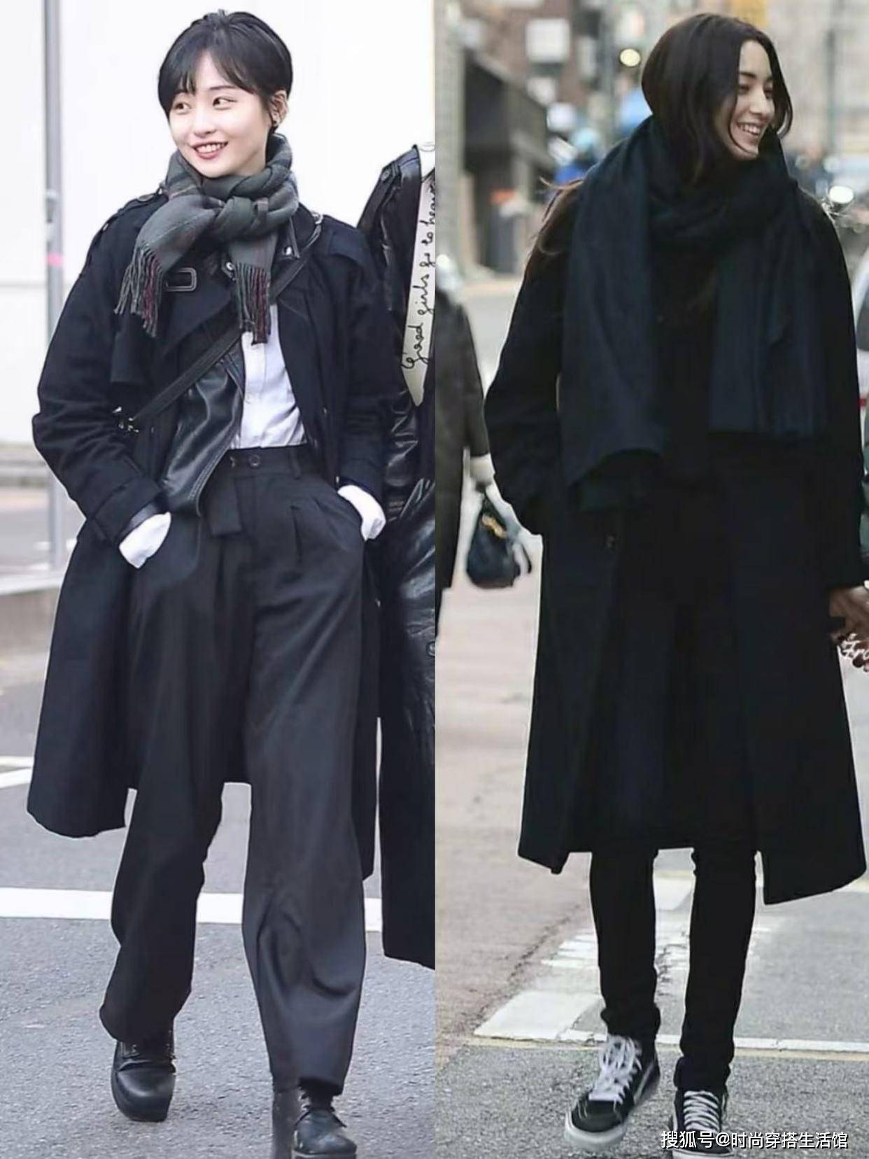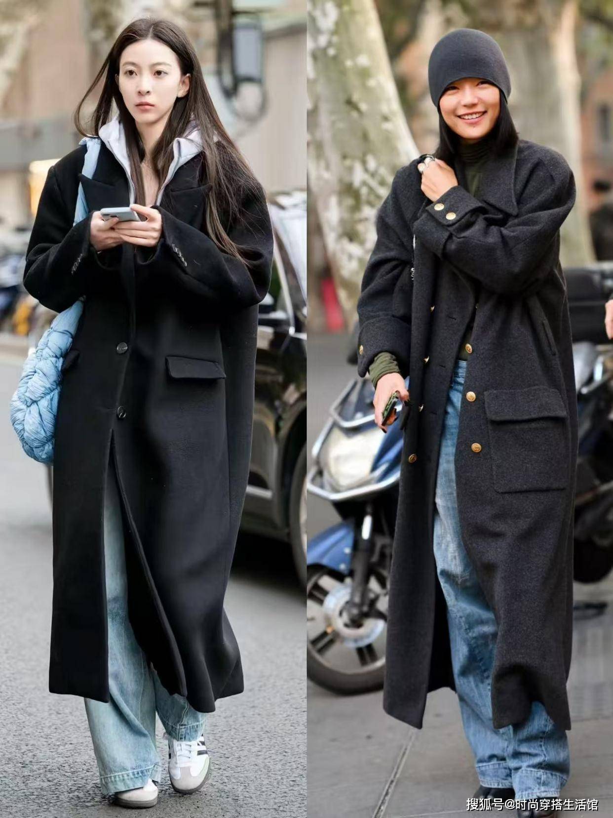 tips2.黑色大衣版型挺括,修身款已经过时