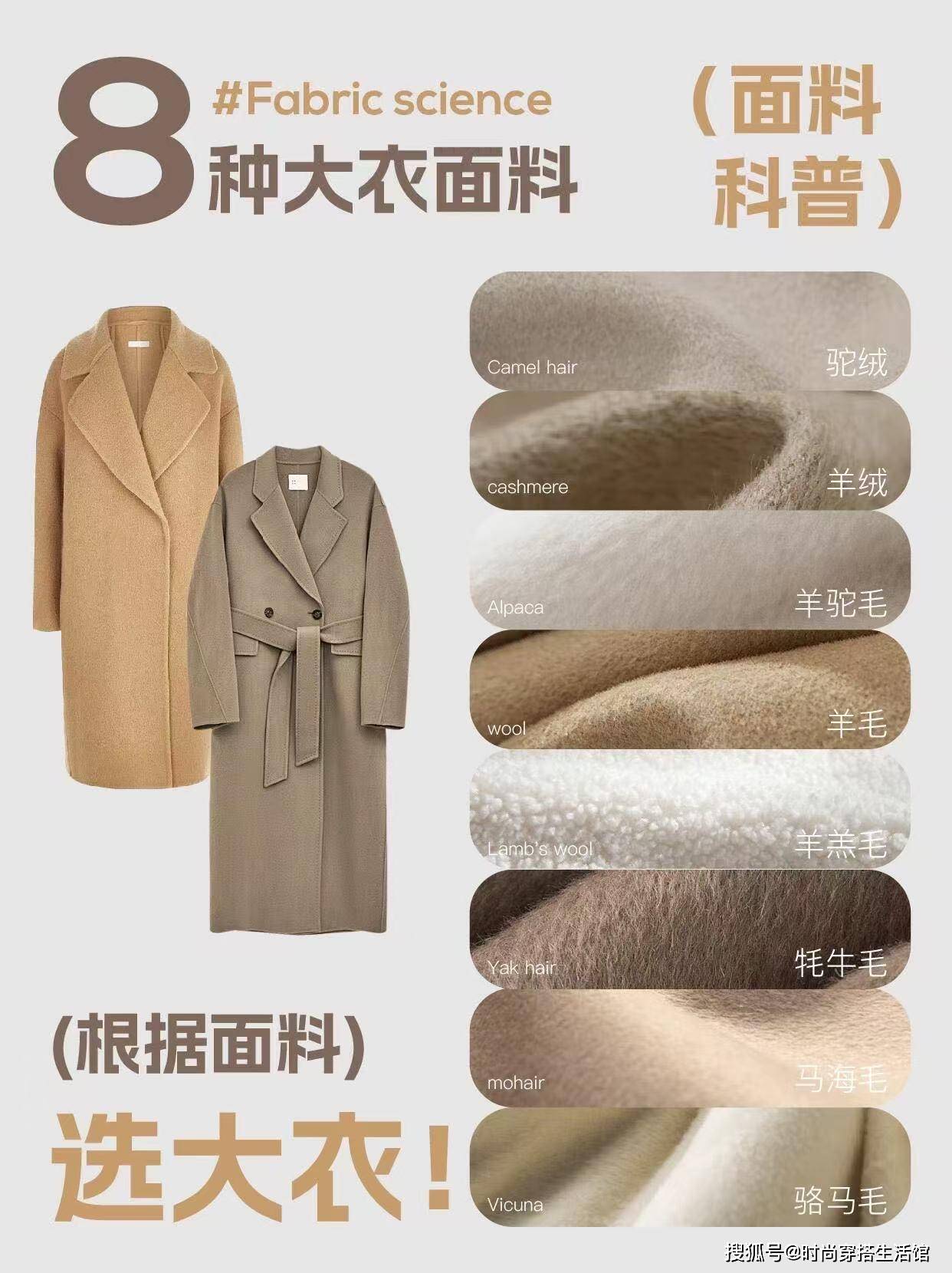 其实对于冬天来说我们选择大衣材质主要有驼绒、羊绒、羊驼毛、羊毛、羊羔毛、马海毛和驼马毛等等,这些面料不仅能够展现出身材线条,同时还更加的挺括有型。反之我们要避免选择软塌变形、起球和褶皱的材质,这些不仅会暴露身材缺点,同时还会拉低整体气质。