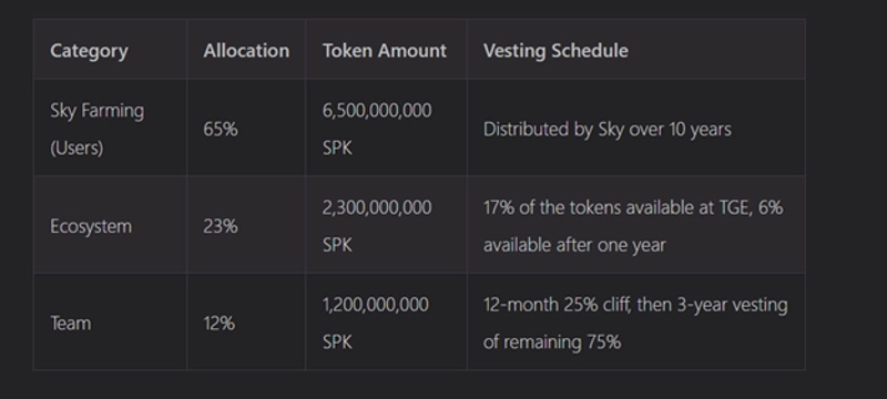 Spark 创始之初,共铸造了 100 亿个 SPK 代币,分配如下: