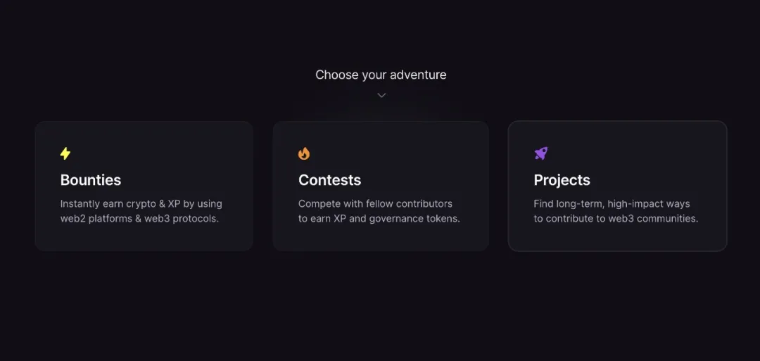 Layer3 平台上赚取和奖励贡献者的主要方式是通过三种不同的任务: