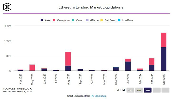 四月份,以太坊的借贷市场经历了一场清算风暴,规模之大,堪称自2022年6月那场动荡事件以来的最高纪录。这让我不禁想起那段市场剧烈震荡的日子,真是让人心有余悸。