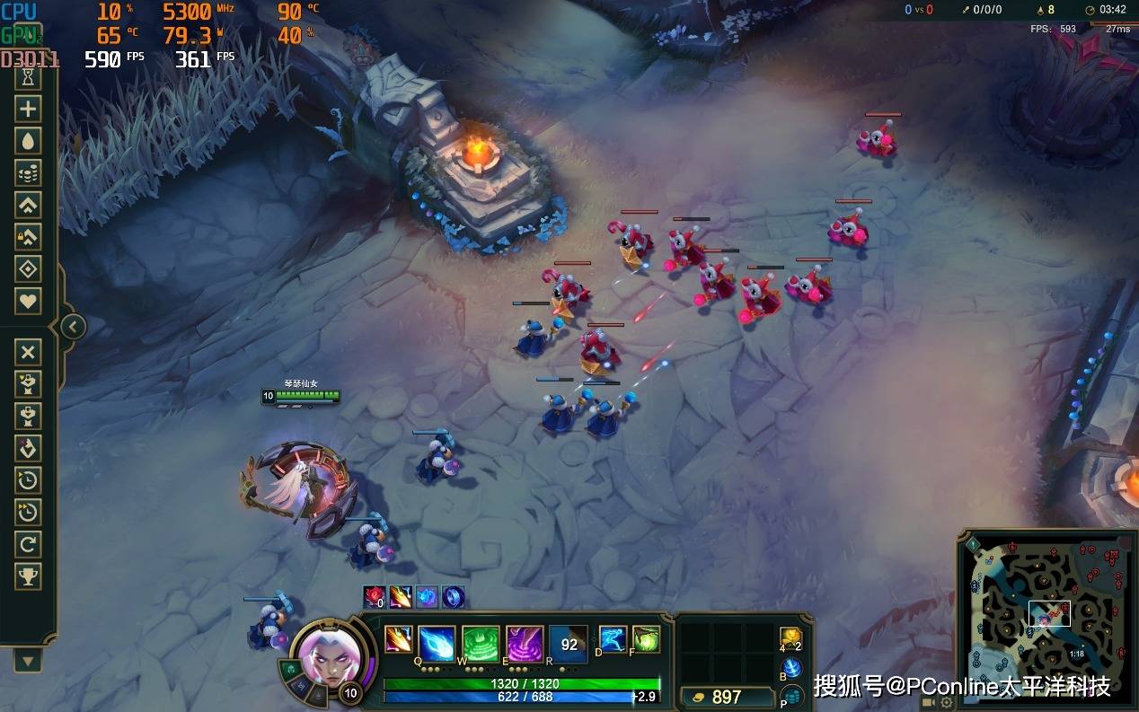 在《英雄联盟》中,锐龙9 9955HX跑出590帧,英特尔275HX 则是 512 帧,AMD锐龙平台平均帧领先幅度约15%,1%Low帧领先25%。对于一款追求极致响应和低延迟的网游来说,这样的差距形成了实际操作手感的加分。尤其在高刷电竞屏下,这种极为跟手的感觉会让游戏优势变得更加明显。