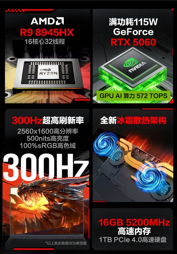 追求极致性价比的话,机械革命蛟龙16Pro 2025新款绝对是预算有限用户的首选。机械革命作为以性价比著称的品牌,这款机型直接将高性能配置拉到了更低的价格区间,让学生党不用吃土也能拥有高性能的体验。核心配置上,R9-8945HX处理器是AMD的旗舰级移动处理器,16核32线程,最大加速频率可达5.4GHz,多核性能表现出众;显卡方面则同样搭载了RTX 5060 Laptop GPU,可满功耗运行,全新的冰霜散热架构能快速带走硬件产生的热量,保证性能输出。