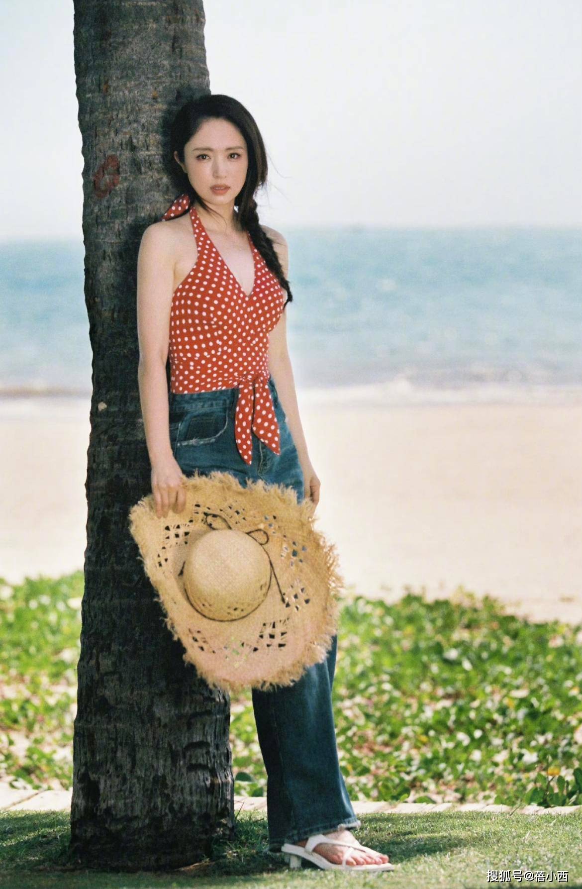 这一身性感挂脖上衣充满复古气质,上衣结合红白色的波点,可以彰显出活力感,非常时髦,比纯色单品更时髦,而且波点没有印花复杂繁琐,更好驾驭,简单却不单调。