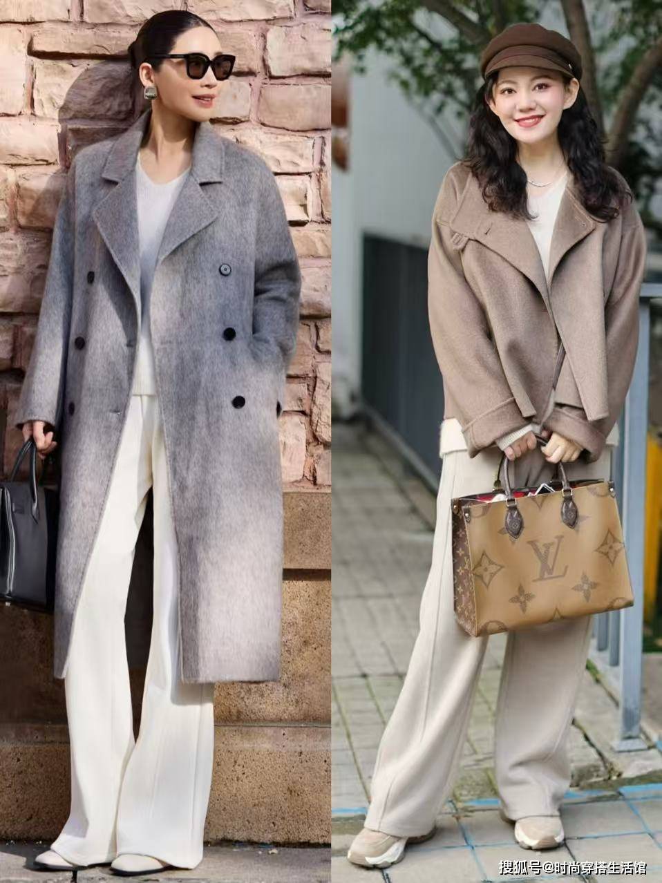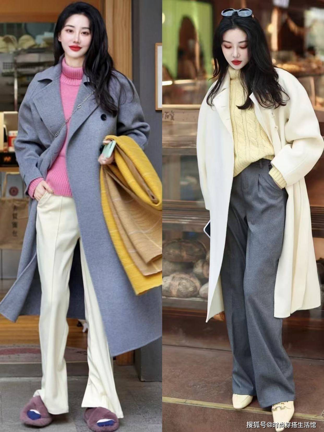 今年冬天如何将大衣和毛衣穿出高级感呢?首先我们要注意的就是色彩的选择,毕竟对于冬天来说本来就枯燥和沉,那么我们就需要在色彩上避免胡乱的搭配,最正确的方式就是可以选择同色搭配,比如大衣和毛衣同色、毛衣和下装或者是大衣和鞋子同色,避免整个造型过多色彩出现割裂感,全身保持色彩不超过三种,能够完美拉长身材比例,视觉上更显高显腿长。