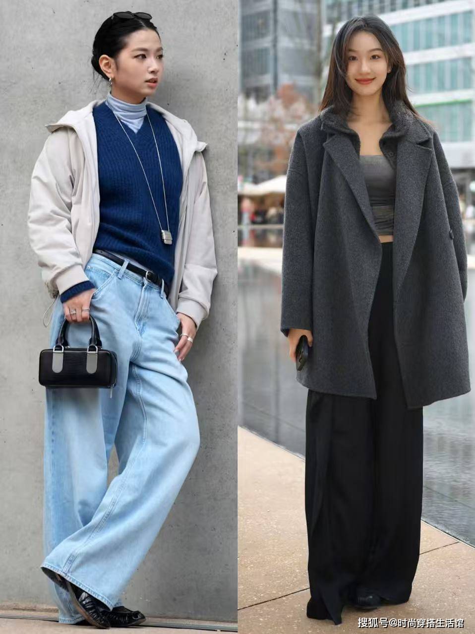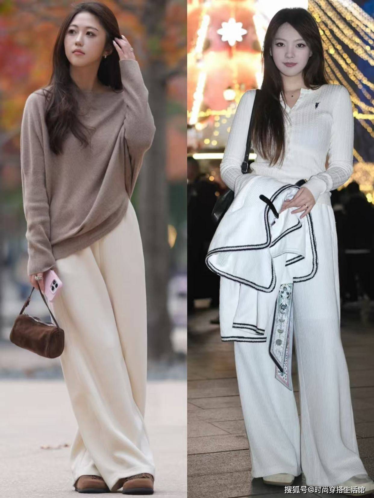 但我们选择穿拖地裤的话就不存在这个问题,不管是南方还是北方城市都合适穿,同时还不挑剔鞋子穿搭,轻松就可以打造出不同的style。
