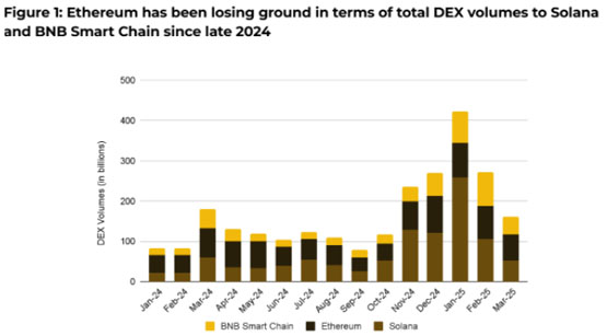 以太坊、索拉纳、BNB 的 DEX 交易量
