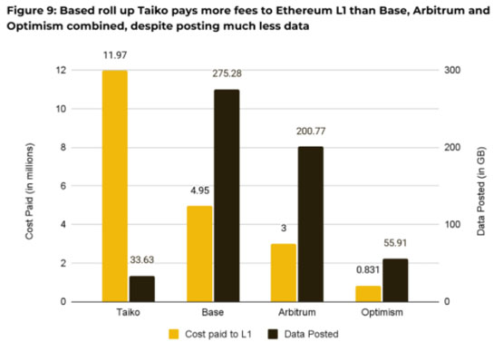 币安研究院的发言人表示,“加强 ETH 价值积累的一个有前景的途径是开发基于 Rollups 的方案”,与 Base、Arbitrum 和 Optimism 等 Layer2 相比,这种方案能够“为以太坊贡献更多手续费”。这就像找到一种新的盈利模式,为公司带来更多收入。
