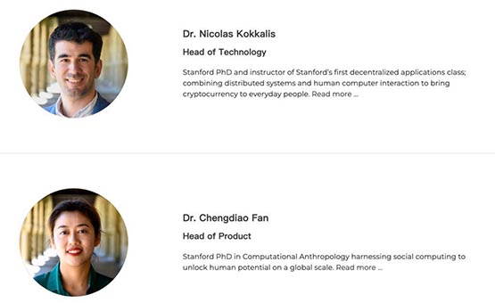Pi Network是2019年3月出现的。按照官网的说法,团队是由美国斯坦福大学的人类学博士Chengdiao Fan和去中心化应用程式讲师Nicolas Kokkalis一起创办的。但是,除了这两个人的资料,官网就没再公布其他团队成员的信息了。