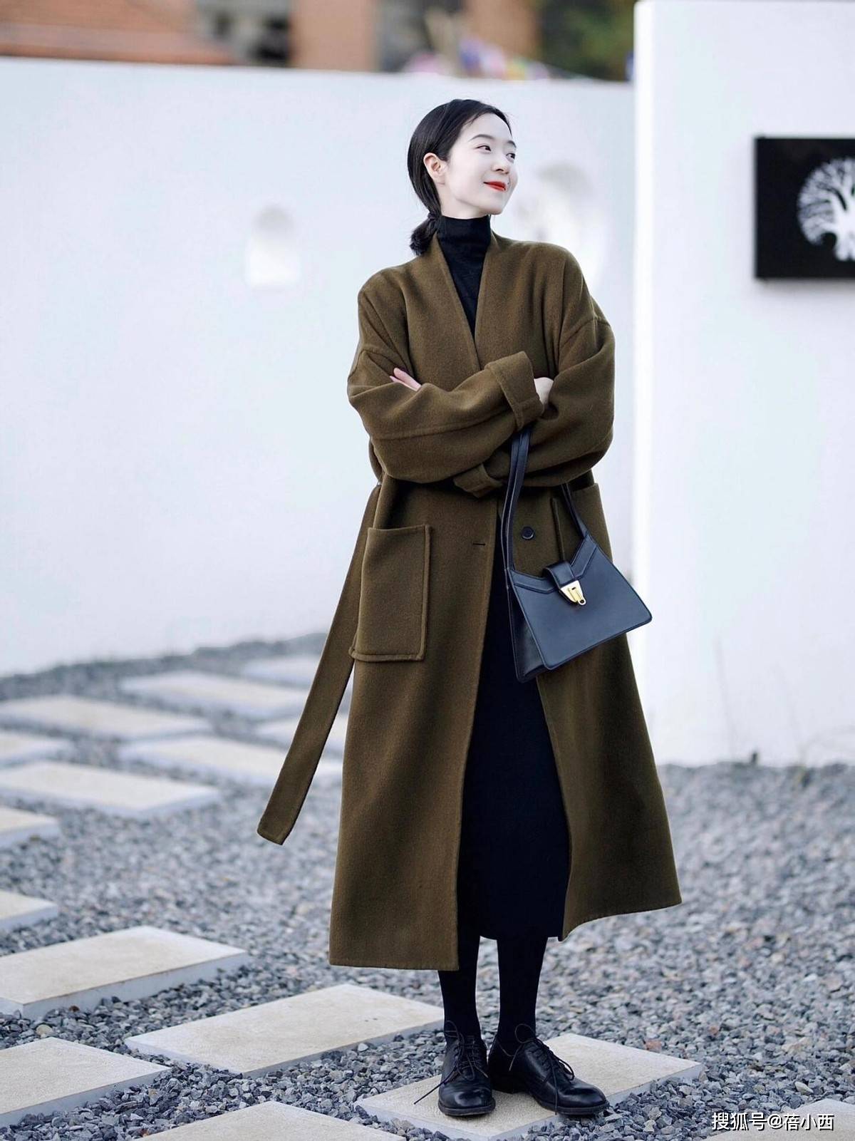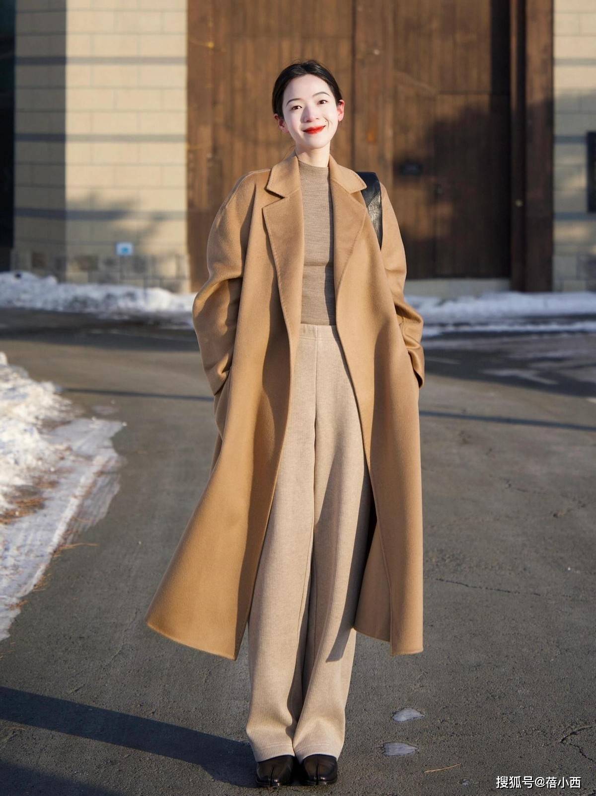 微胖姐妹也可以试试“H型大衣+修身长裙”,大衣选直上直下的H型,长度盖过臀部,内搭穿紧身针织+过膝长裙,裙子选垂坠感强的面料,立马就能修饰腿型,又能让整个人的线条更舒展,冬天再搭配一条厚打底裤也看不出来,保暖又显瘦。