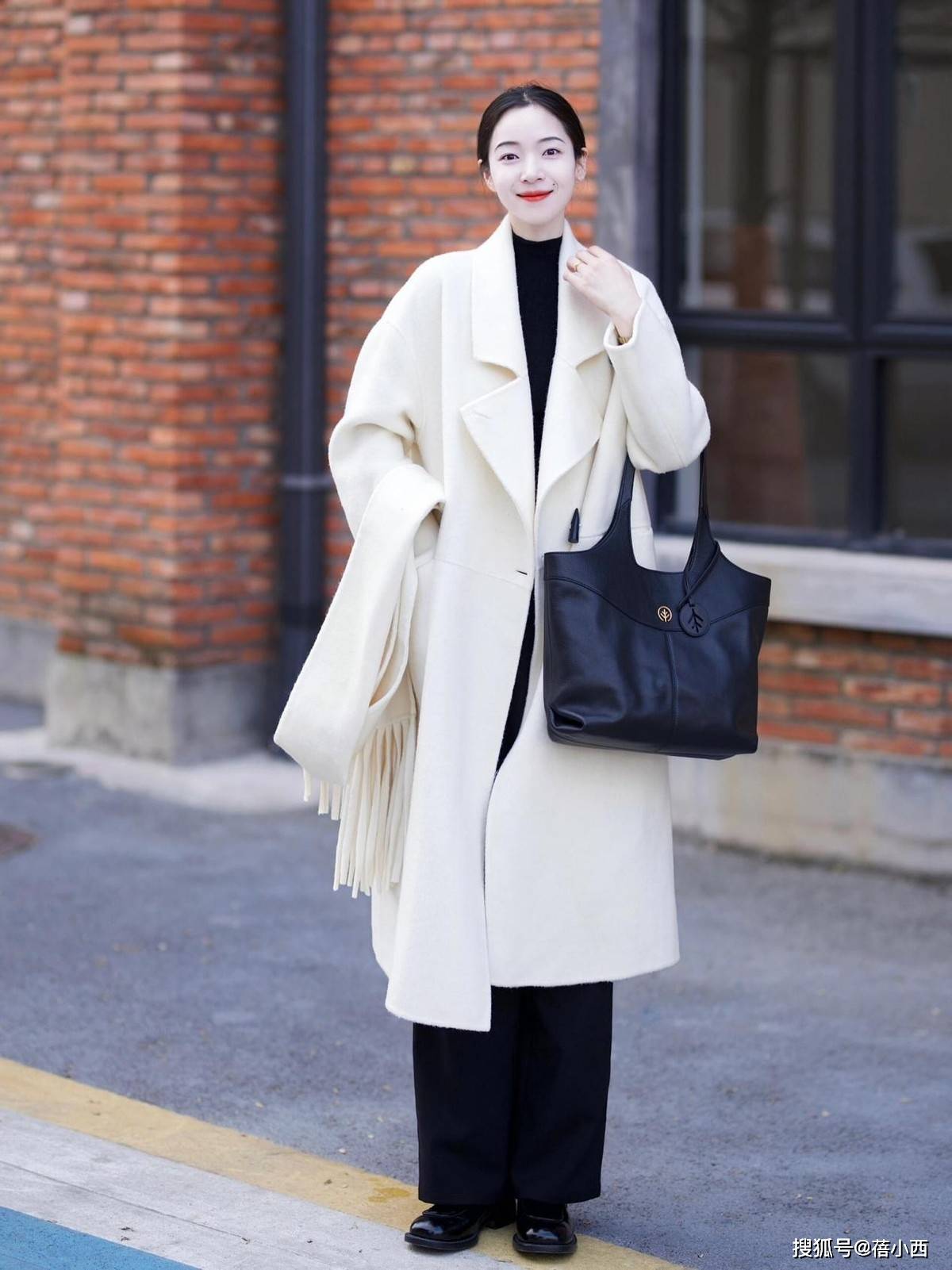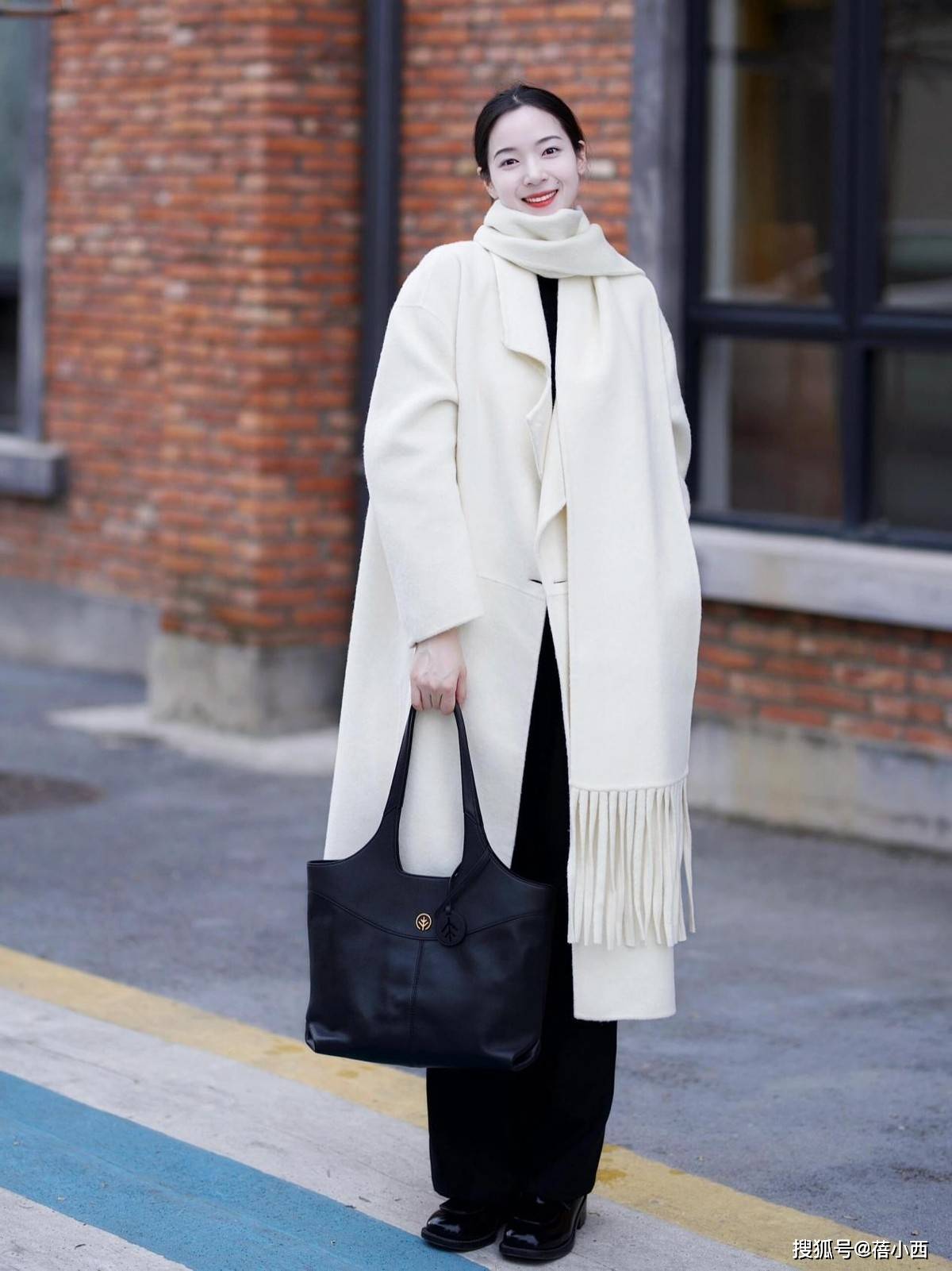 冬天穿大衣,最不会出错还显贵气的组合,必须是“黑白配”!简约的白色大衣搭黑色阔腿裤,显瘦、高级、还百搭,不需要其他花里胡哨的配色堆积在身上,简简单单就很耐看,不管是通勤还是逛街,都能穿出“不费力的时髦感。