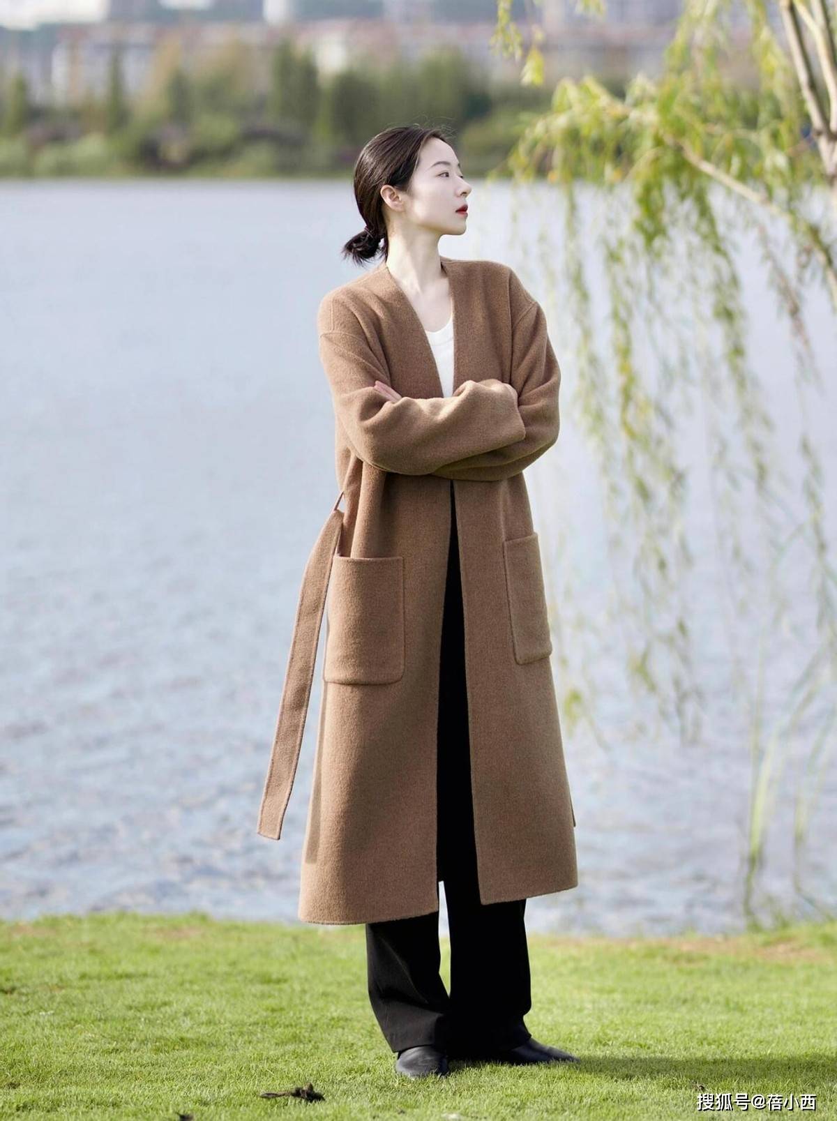 简约大衣最出效果的时髦穿法,一定是同色系,选一个低饱和主色,比如驼色和棕色大衣就很耐看,内搭到下装再到鞋子,都往这个色系里靠,视觉上既显高又显干净。