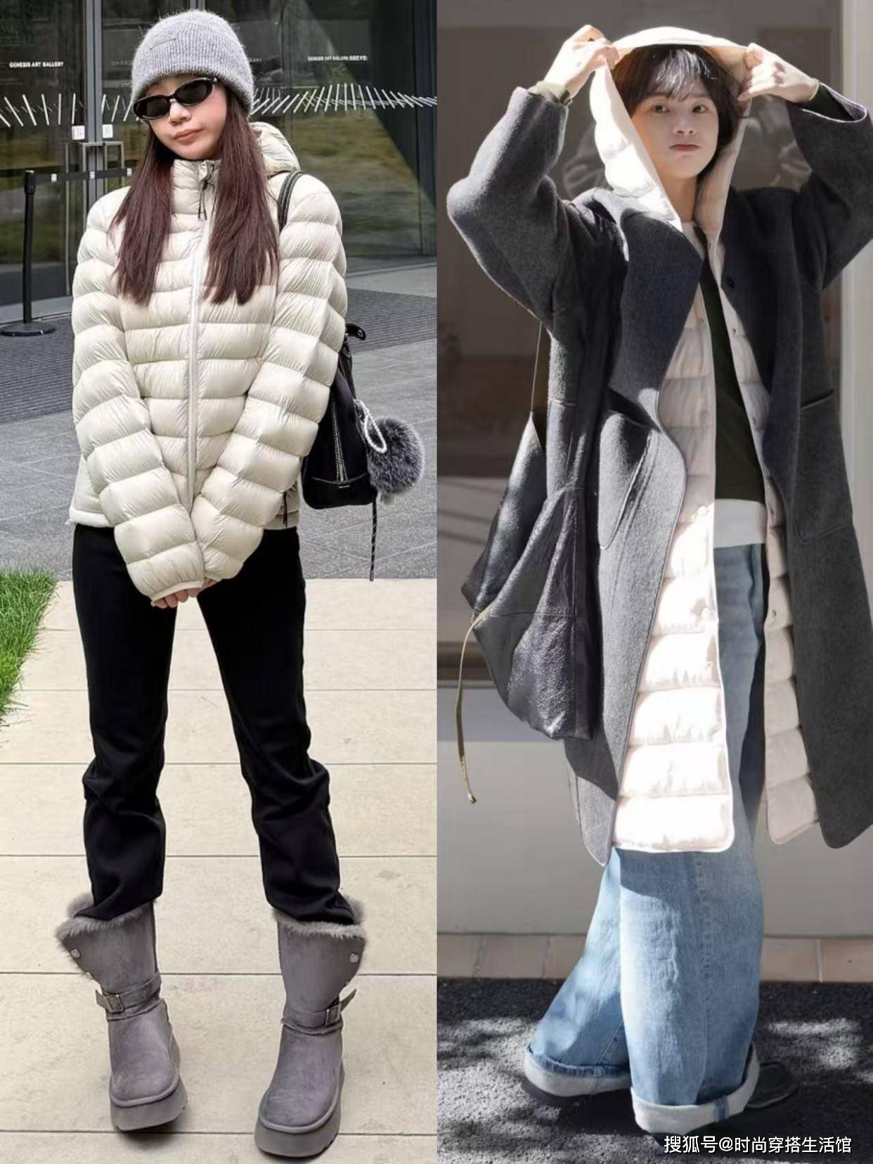 冬天选择“排骨羽绒服”搭配的时候,很多人习惯将当成外套穿,那么这时候的我们就可以选择敞开穿,利用“三明治叠穿”方式来增加整体造型的保暖性,比如我们可以选择羊绒衫叠穿衬衫,高领衫叠穿牛仔外套或者马甲、卫衣等等,完美做到时髦和保暖一把抓,冬天选择叠穿最大的精髓就是凸显层次感,避免出现“头重脚轻”的现象。