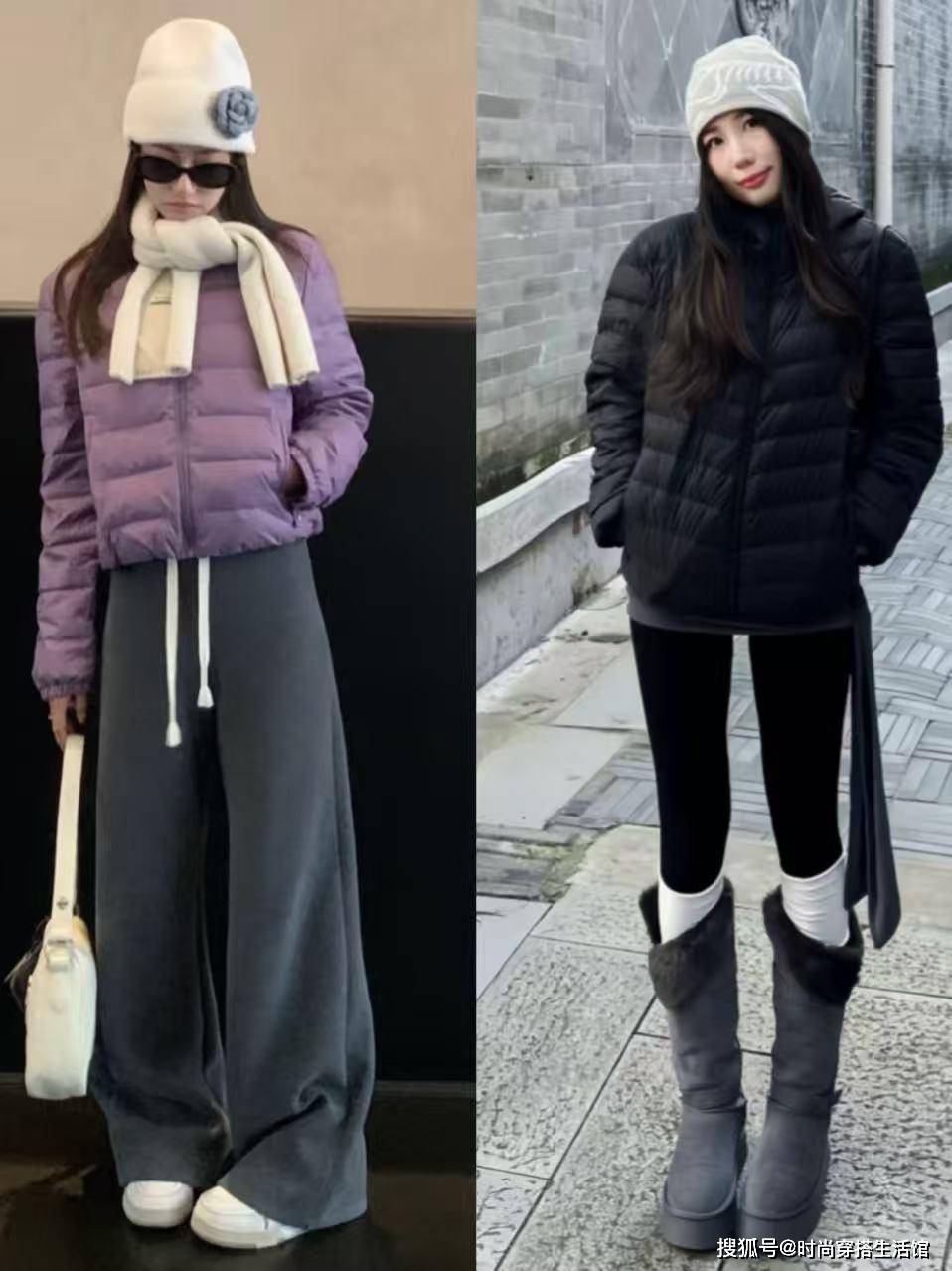 其次“排骨羽绒服”虽然是轻薄的款式,但对于微胖或者肩宽背厚的女性来说也担心会出现臃肿和显胖,那么最好的搭配方式就是可以营造出松紧反差让我们的整个造型得到平衡效果,我们可以选择收腰或者是自带腰带的款式,下身搭配紧身或者合身的下装,通过松紧结合的方式来纵向拉伸穿搭效果,视觉上既时髦又显瘦。