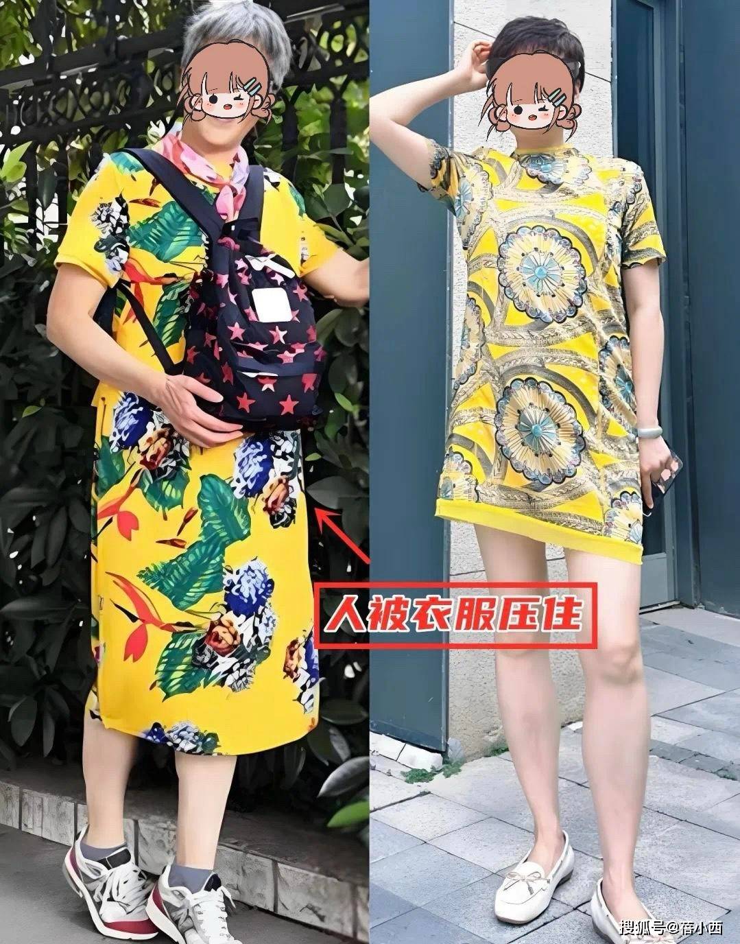 而且这种印花图案大多设计陈旧,不符合当下的审美,容易给人一种“老气横秋”的感觉,让你看起来比实际年龄大好几岁。