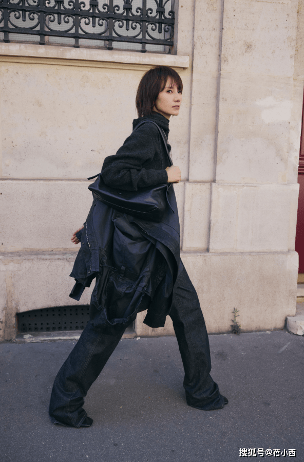 此外,腿上这条裤子的长度可不是所有人都能借鉴的,裤脚面料都快把鞋面全部盖住了,小个子还是避而远之吧。