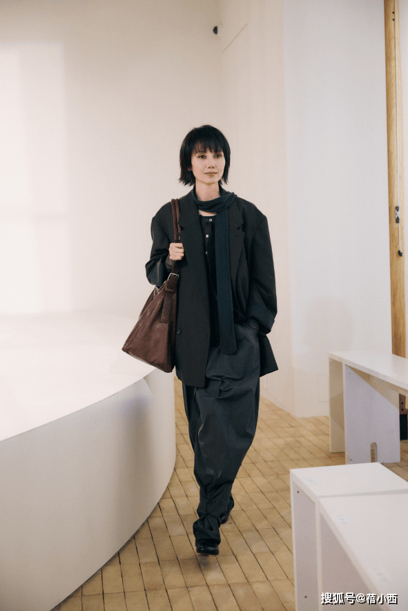 西装外套颜色有很多种,其中黑色流行度极高,因为受众广,毕竟男女生都能驾驭。腿上的裤子有点看不懂,大腿处松量多,越是靠近裤脚,松量会减少,这种设计思路没啥问题,只是大腿处松量要适可为止,否则驾驭难度会提高不少。