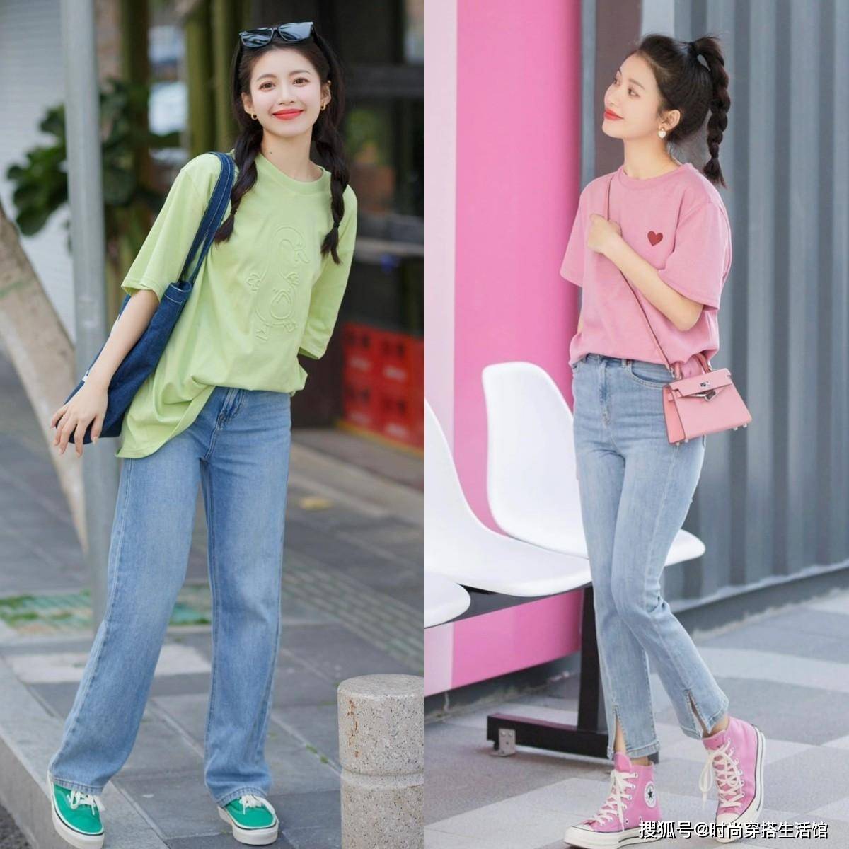 首先,关于T恤的选择,想要穿出高级的效果,就要避开一些花里胡哨的图案,以及显黑老土的配色。越是素雅清新的T恤,越容易穿出个人高级气质,要想穿出更加抓人眼球的效果,那“明度高”的T恤会更加适合你。明度较高的纯色T恤百搭又衬托肤,在日常生活当中很受时髦女性的追捧,没有穿搭烦恼也不容易翻车。