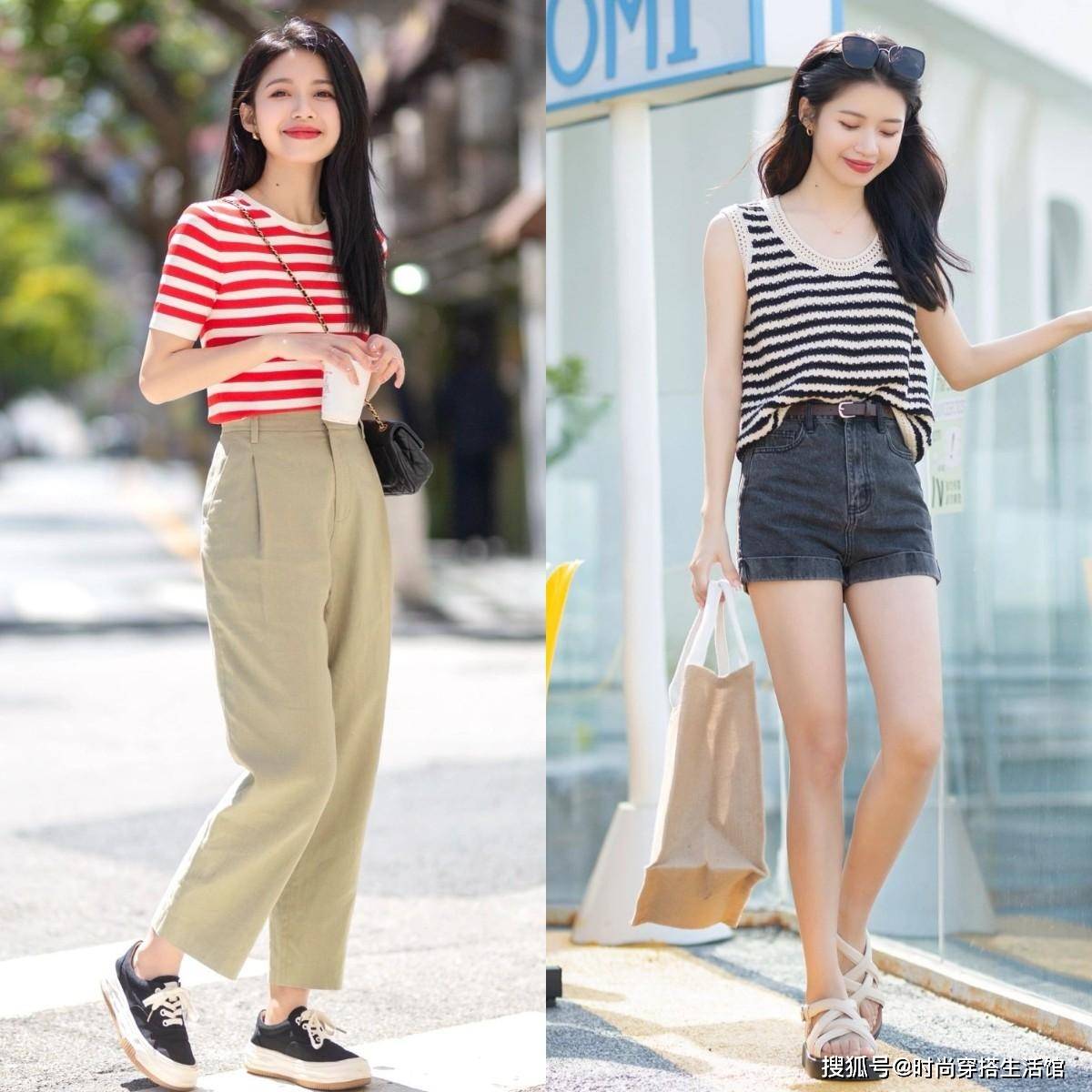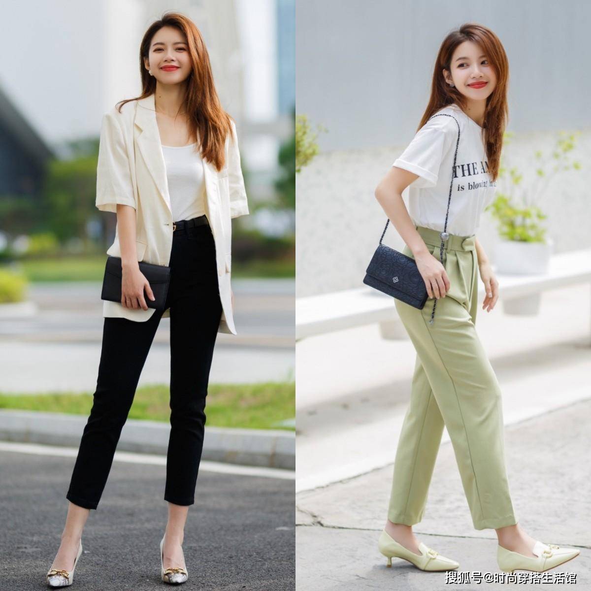 在夏天穿裤子要有一些技巧,就像我们很多人会尝试松紧结合的搭配,宽松的上衣搭配上紧身的下装,这样的搭配组合也非常容易显身材,上衣宽松一些,那么下装就要修身,如果上衣比较修身,那么下边就可以搭配稍微宽松一些的裤装。