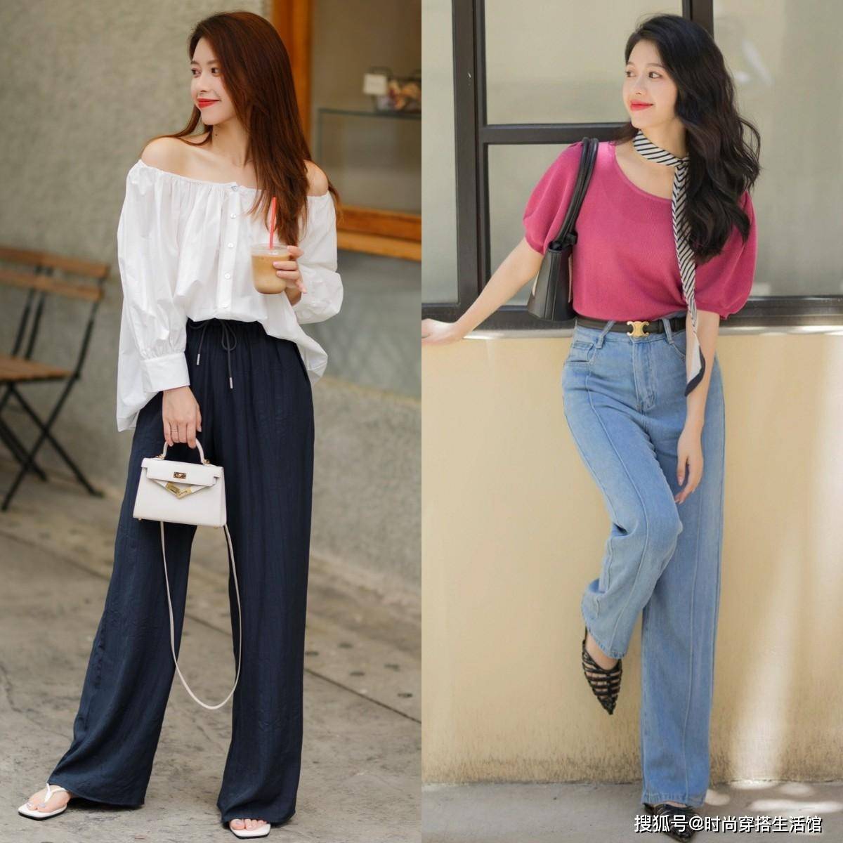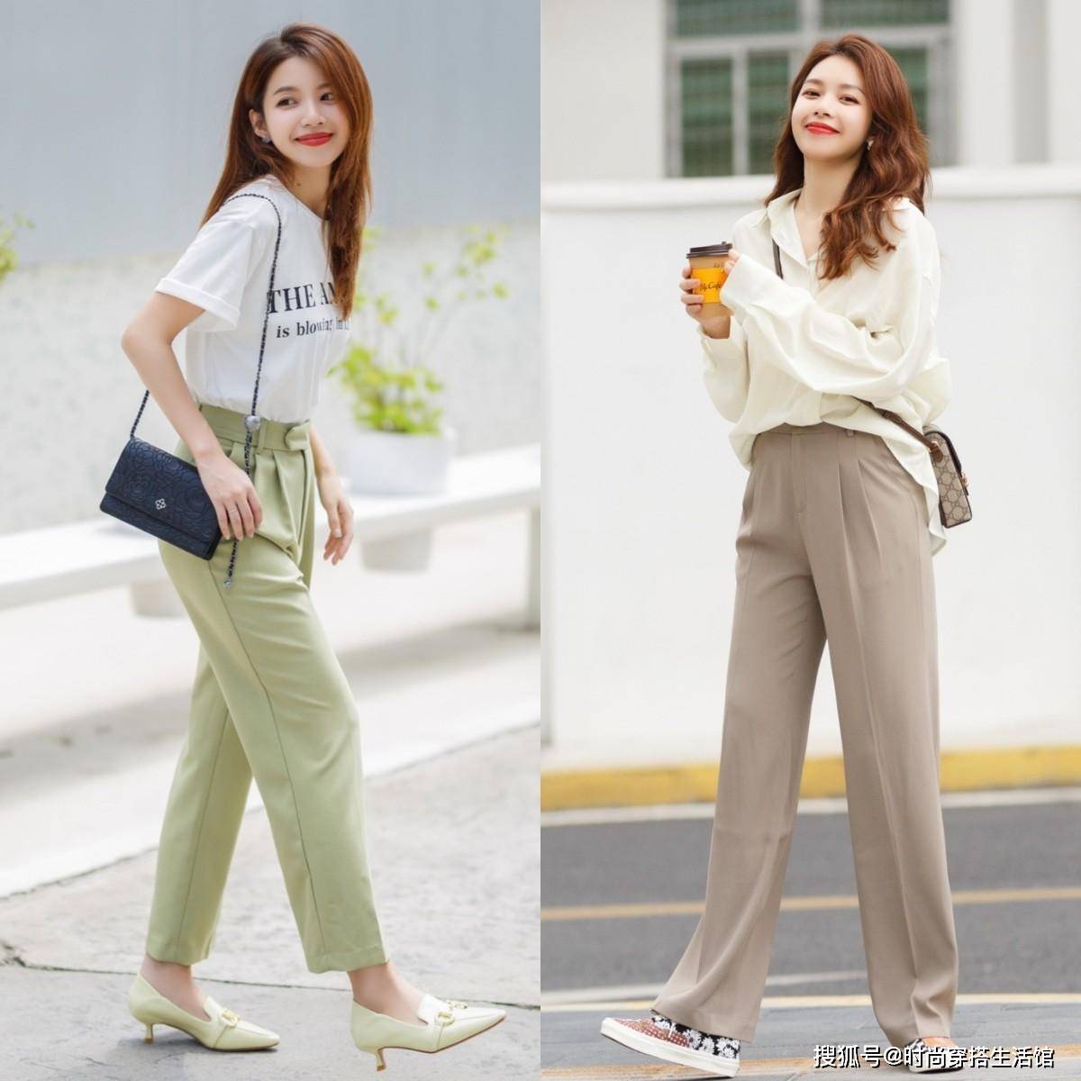小个子首选高腰阔腿裤,而高个子可以选择正常腰线的阔腿裤,同时可以利用塞衣角或者搭配短上衣的方式来强调腰线,这样对修饰身材比例起到更好的帮助。