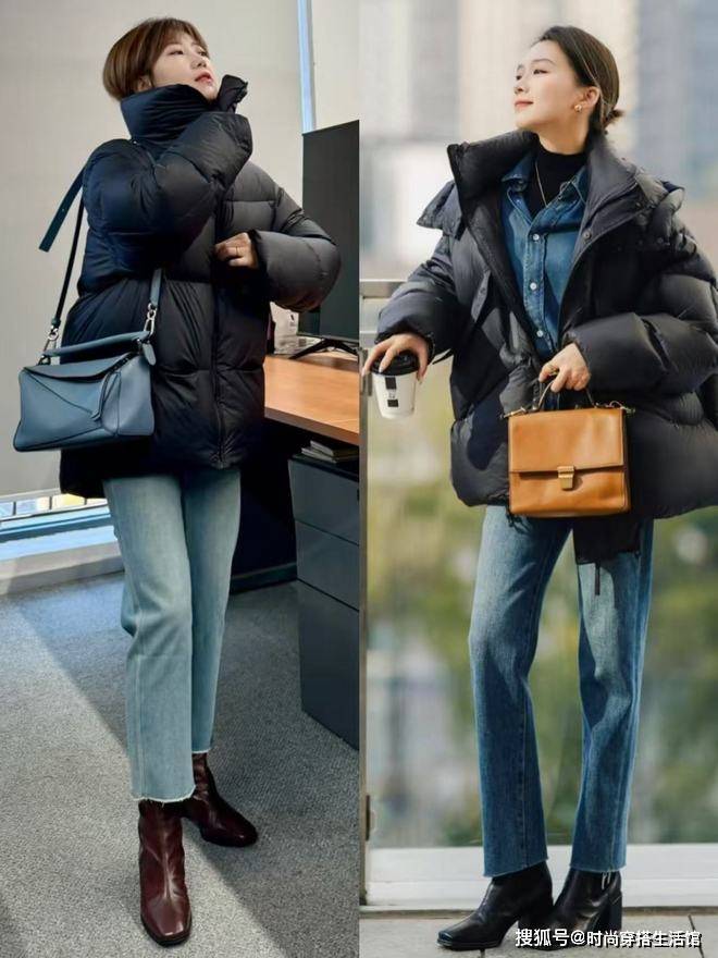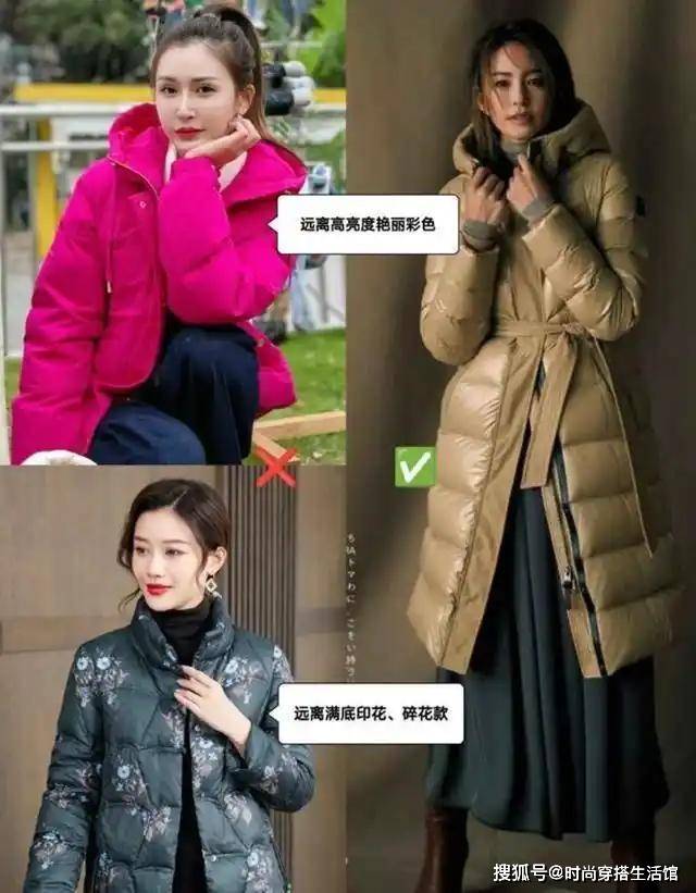 而那些拖地的羽绒服虽然遮肉效果好,但容易给人拖沓感,走路时也不方便,反而显得人没精神;太短的长度则会暴露更多的小腿,如果腿型不够完美,很容易让小腿看起来更粗壮,破坏整体比例感。