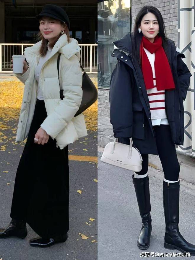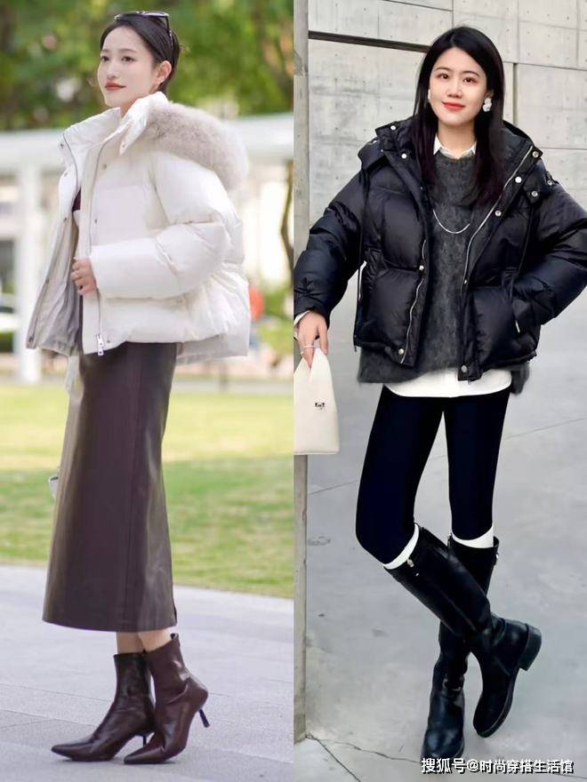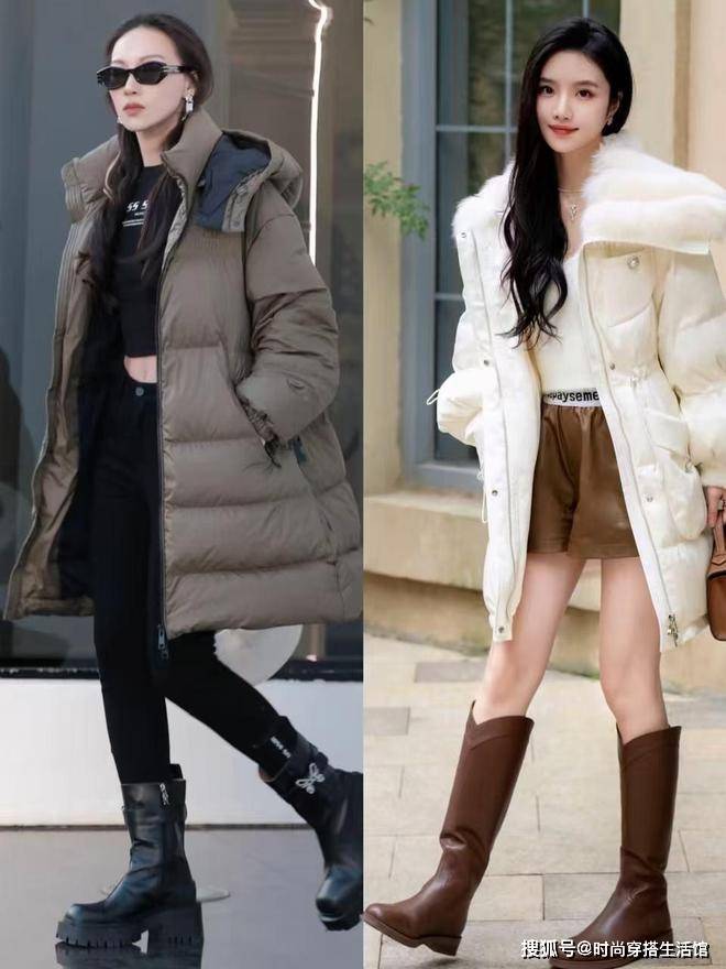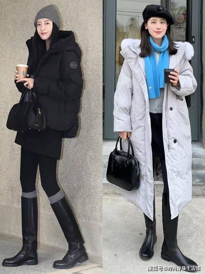 例如,选一件及膝的羽绒服搭配中筒或长筒骑士靴,能够恰到好处地展露腿部线条,而不会让人感到过分暴露。这样的穿搭即便在低温环境下,也能兼顾保暖与时尚。