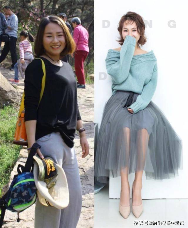 在日常穿衣时,微胖身材的妈妈们可以穿一些“V领、方领或者大圆领”设计的衣服,露出脖颈曲线、锁骨和脸型,让上半身看起来不那么紧绷,从而在视觉上达到“显瘦”的作用。