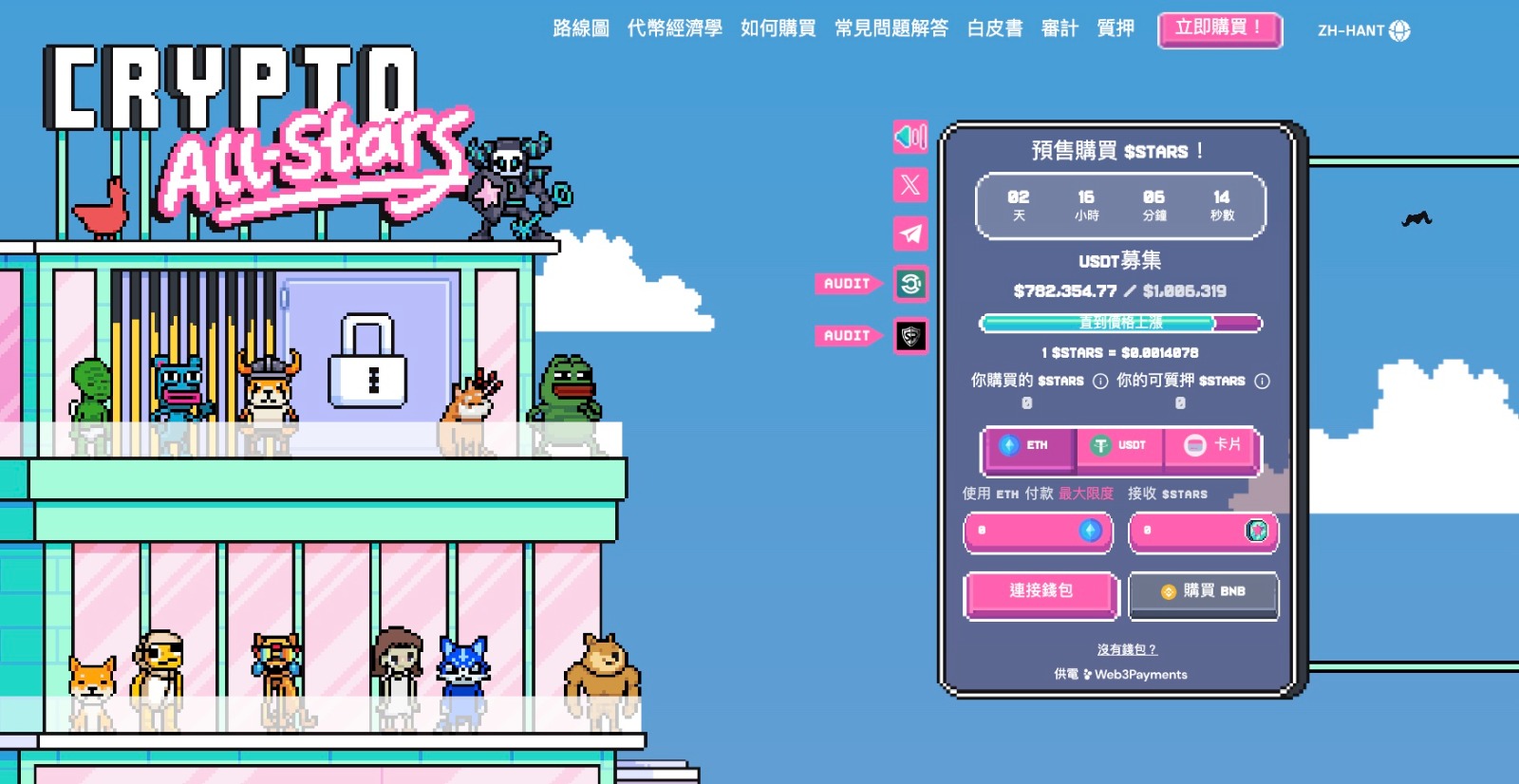 就在Durov被捕的同一周,模因币领域的新秀Crypto All-Stars ($STARS)在其预售阶段取得了巨大成功,仅在一周内就筹集了超过53万美元。Crypto All-Stars引入了一项行业首创的功能,允许用户将不同的模因币(如Dogecoin和Pepe)进行统一质押,以获得原生$STARS代币的奖励。这一创新不仅为模因币持有者提供了额外的被动收入机会,还增强了模因币市场的活力。