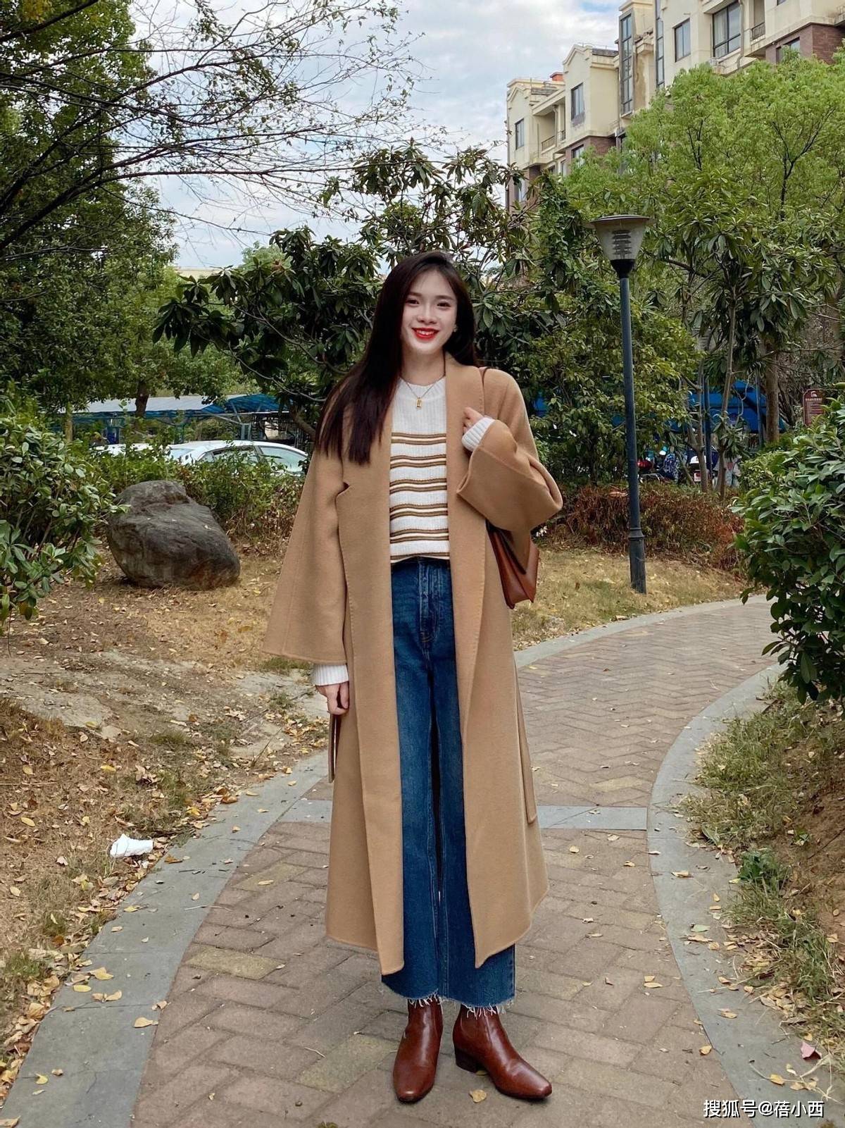 长款大衣配牛仔裤,绝对是冬天最经典、最不会出错的搭配,自带一种随性又高级的气质。版型上,建议优先选直筒牛仔裤、烟管牛仔裤或者阔腿牛仔裤,这些版型能修饰腿型,显得腿又直又细,腿粗胯宽的女生可以放心穿。