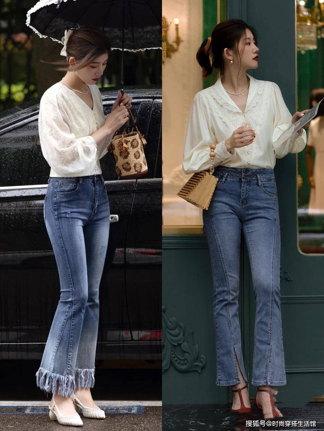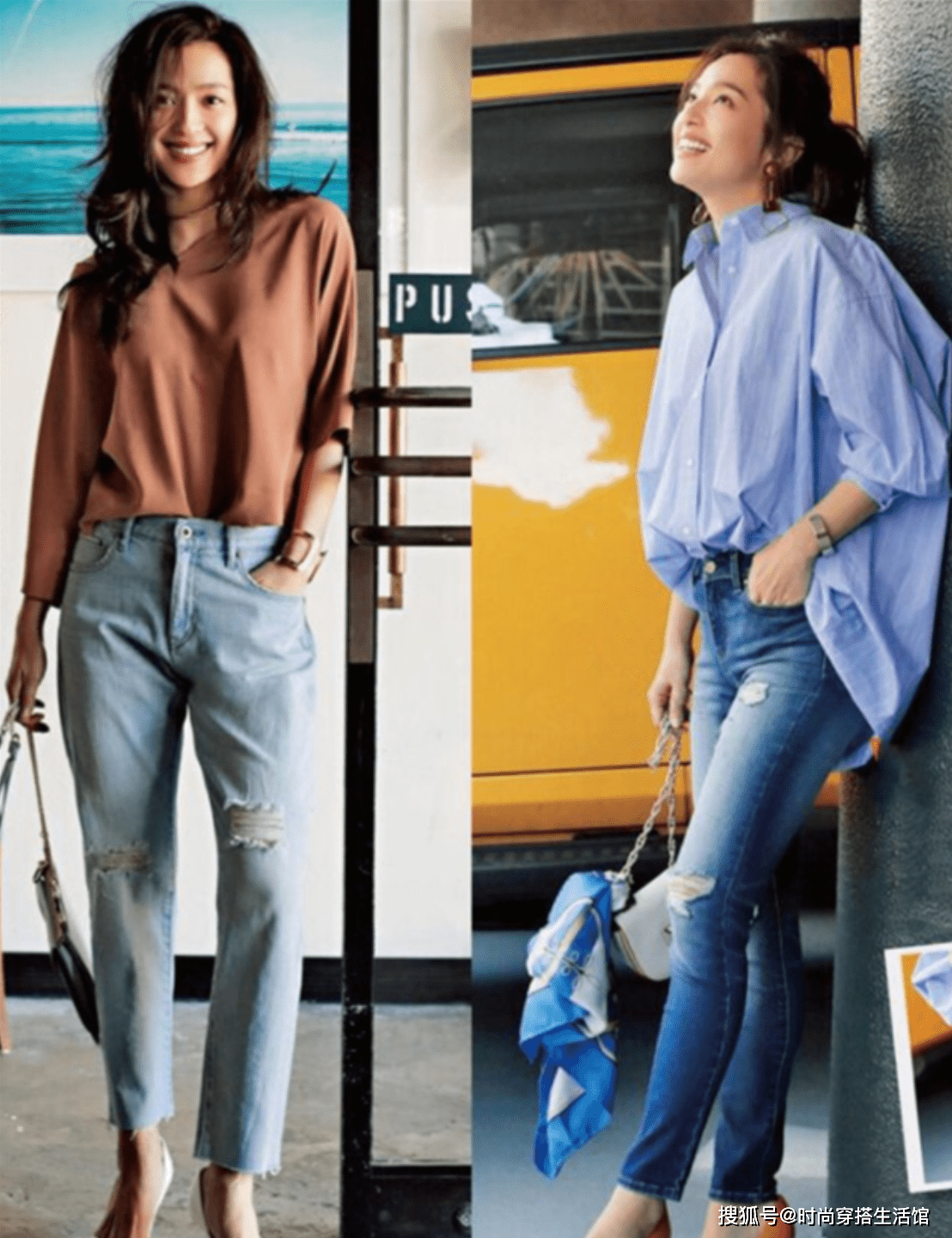 这种九分牛仔裤最大的优点在于它能够直接把我们腿最细的脚踝露出来,这样穿就不会觉得臃肿,尤其是那些腿粗但是却想要能够通过穿裤装修饰身材比例的小姐姐,就可以大胆的通过这种九分的裤子凹造型,一定不会出错,反而会显得很轻便。