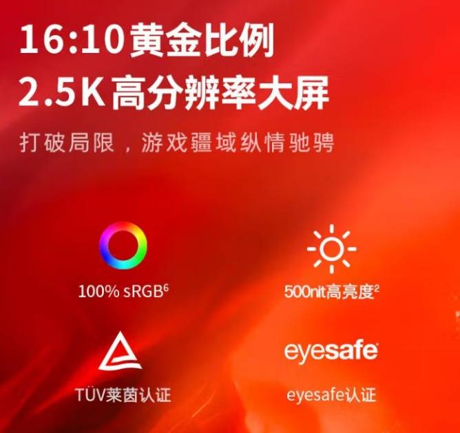 屏幕,同样为当下游戏本中的一线水准,采用2.5K分辨率+ 240Hz刷新率电竞屏并覆盖100% sRGB色域,保证游戏画面丝滑流畅,色彩鲜艳、还原精准,不落下一丝战场细节。该屏幕还通过了通过TUV莱茵认证,eyesafe认证,长时间使用不易眼酸。