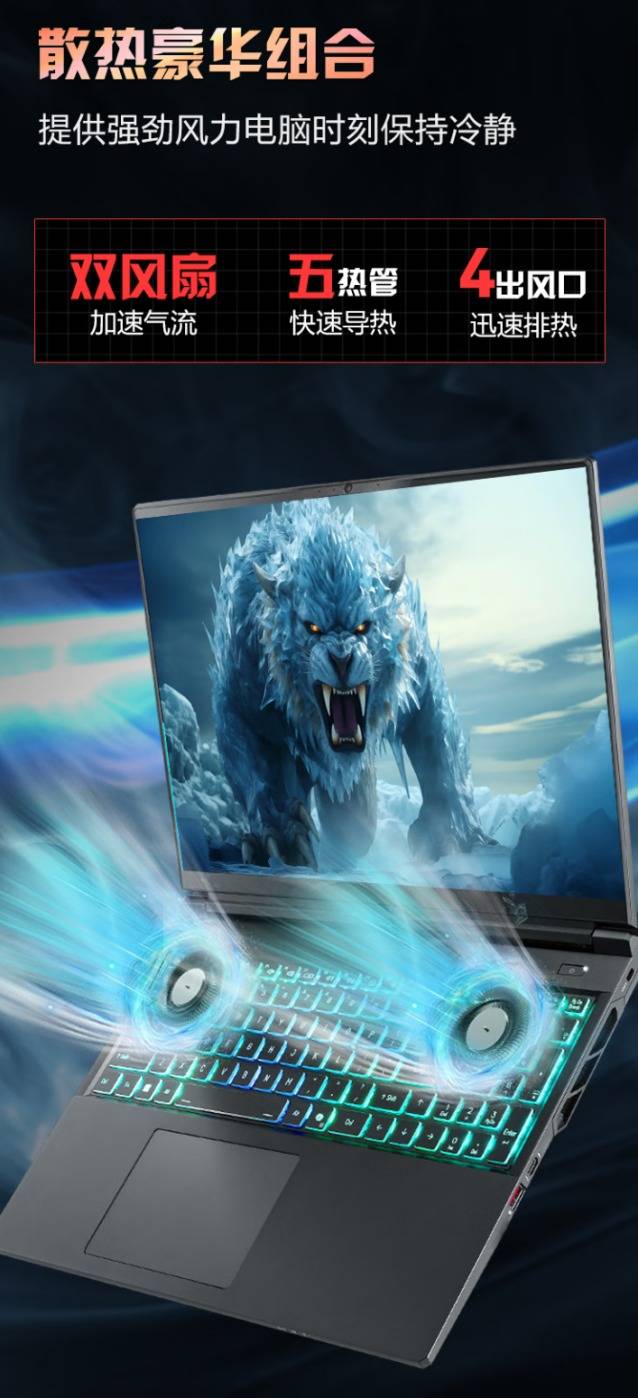 显卡配置同样是RTX 5060独立显卡,支持115W满功耗释放与独显直连技术,散热采用“酷寒散热”系统,双风扇+五热管+大面积散热鳍片快速导出热量,可实现最高190W的性能释放。