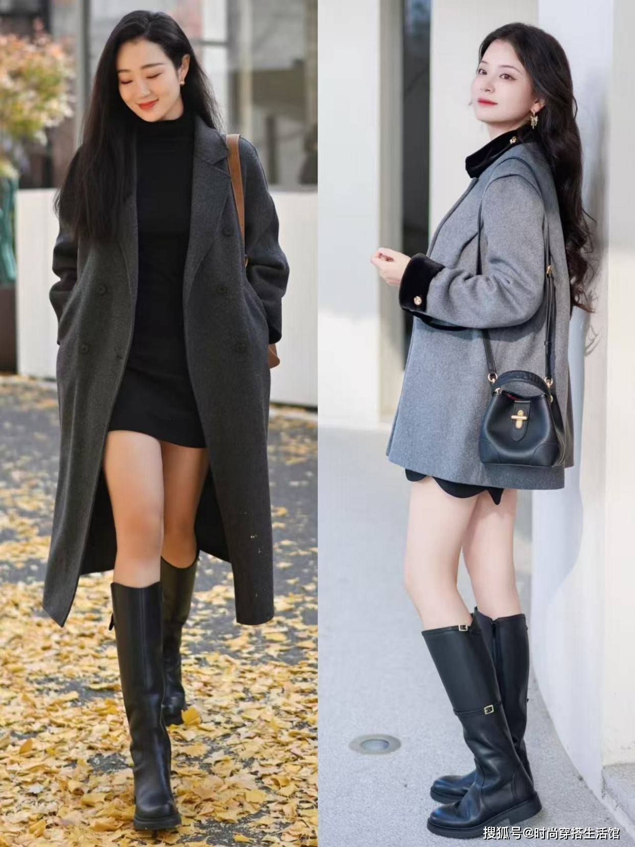 其次就是冬天穿大衣和长筒靴不管是高个子还是小个子女生都能轻松驾驭,对于高个子女性来说可以选择过膝不过踝的大衣 ,小个子女性选择过臂不过膝的大衣,脚上搭配一双长筒靴,完美的秀出自己的身材比例,视觉上看起来更加显高显腿长。