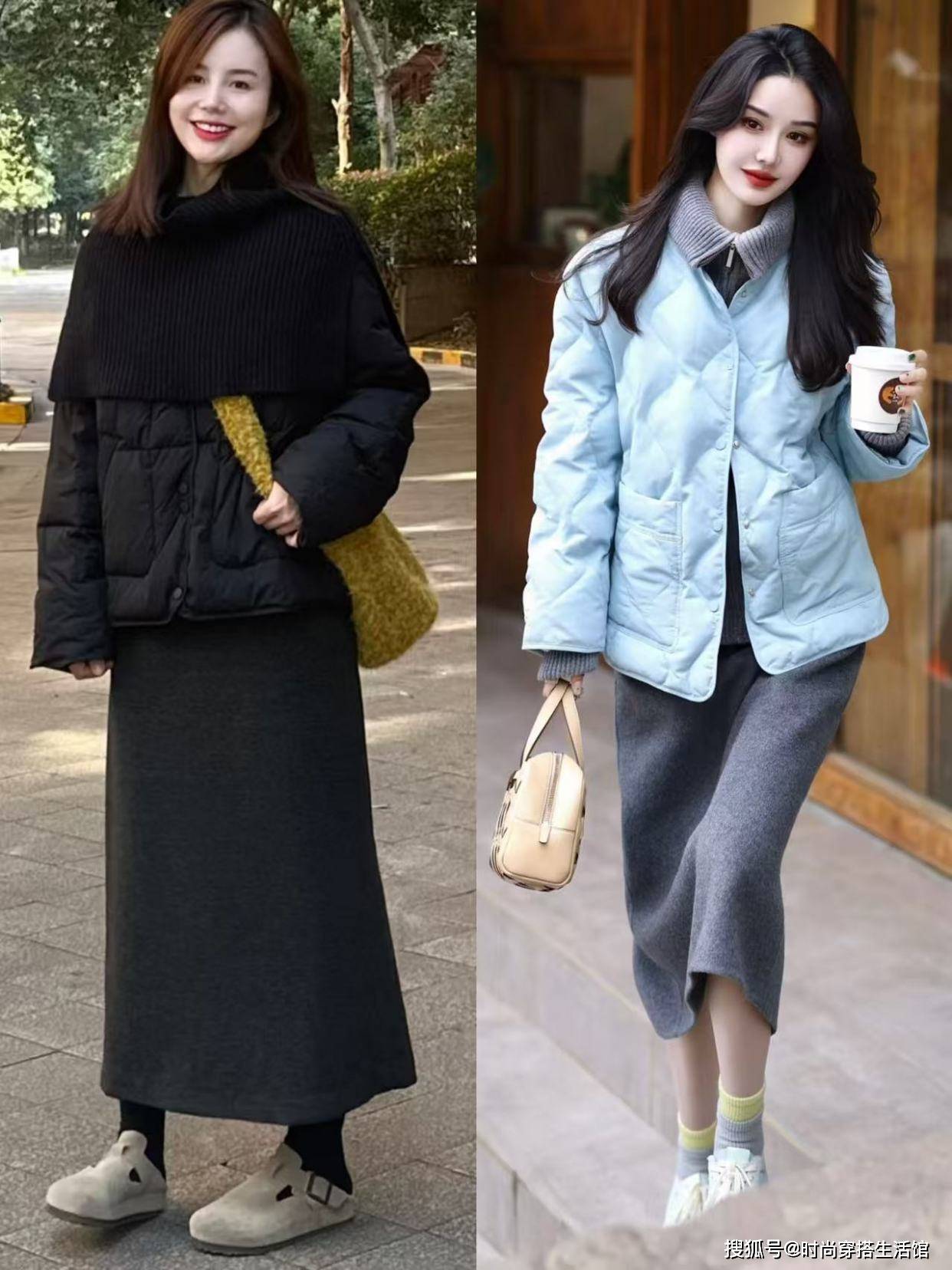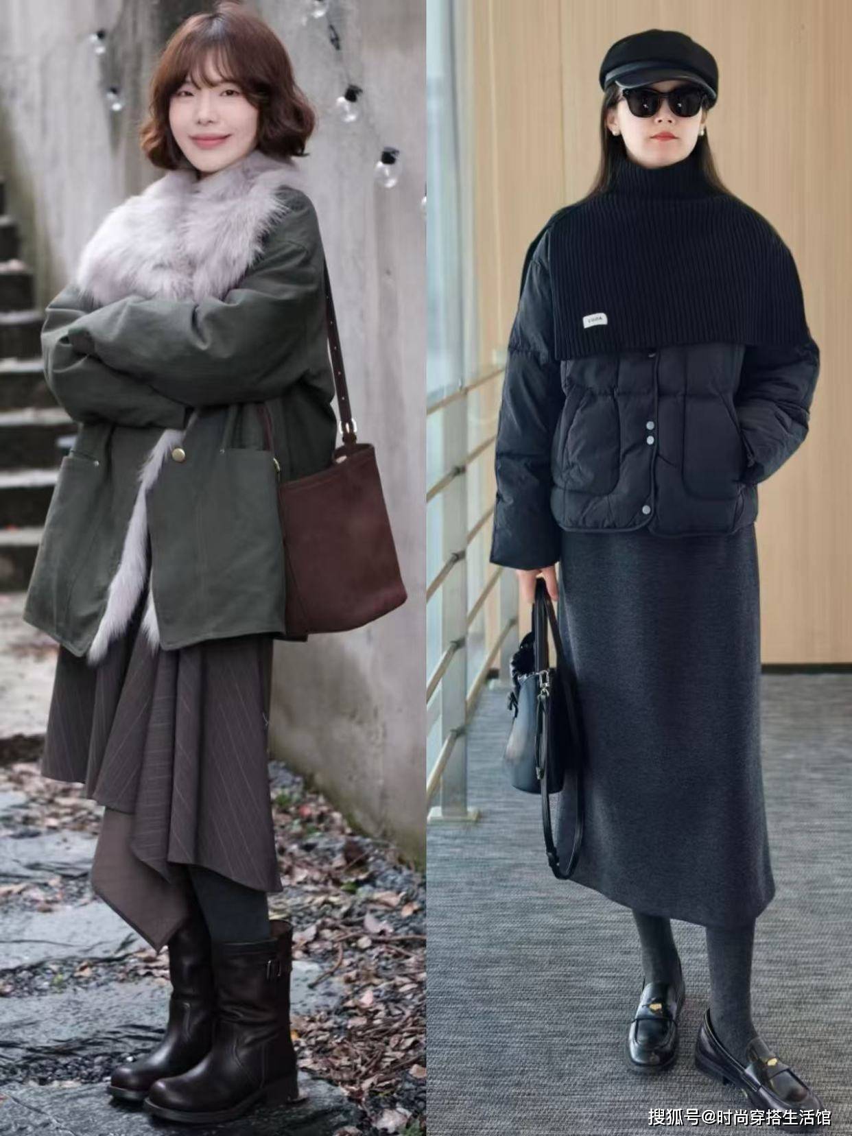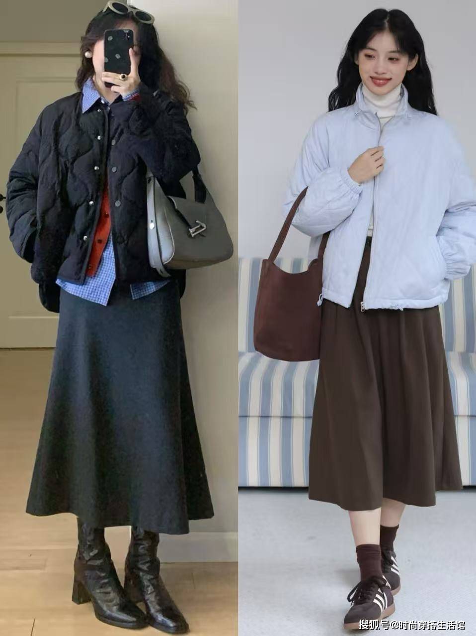 此外冬天最常见的还有棉服,这也是中年女性穿搭中最常见的外之一,但很多人会担心棉服很难穿出彩,其实我们可以选择菱形棉服,通过压缩工艺将内里的绒碾压起来,穿上后完全不用担心会臃肿和显胖,下身搭配高腰裙能够有效的修饰身材,视觉上会更加的温柔显气质。