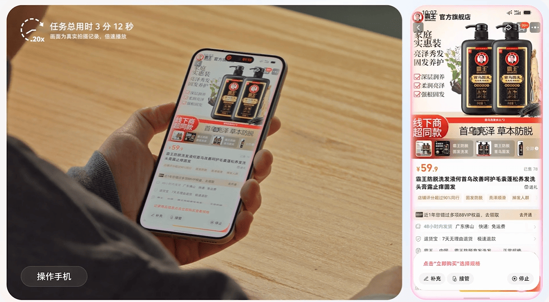 该手机的核心突破在于其 AI Agent 能力被深度整合至操作系统层面。根据官方演示,用户可通过一个语音指令,让其自主完成跨应用复杂操作。例如,当用户在社交媒体看到心仪商品,仅需发出指令,手机便可自动识别商品信息,并在淘宝、京东等多个电商平台进行搜索比价,最终停留在最优购买页面等候用户确认支付。这种高度自主的操作模式被美国科技媒体评价为自到触屏以来智能手机根本性的变革。