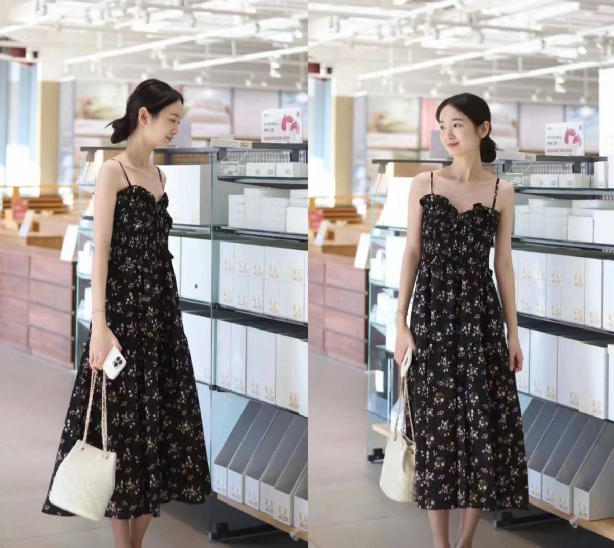 在袖口的设计上,裙子分为不同的裁剪,无袖的样式,最有清凉感,裸露出来的手臂肌肤偏多。像这款黑色的吊带连衣裙,它就会打造出比较清凉的穿搭,适合身材紧致的人尝试。