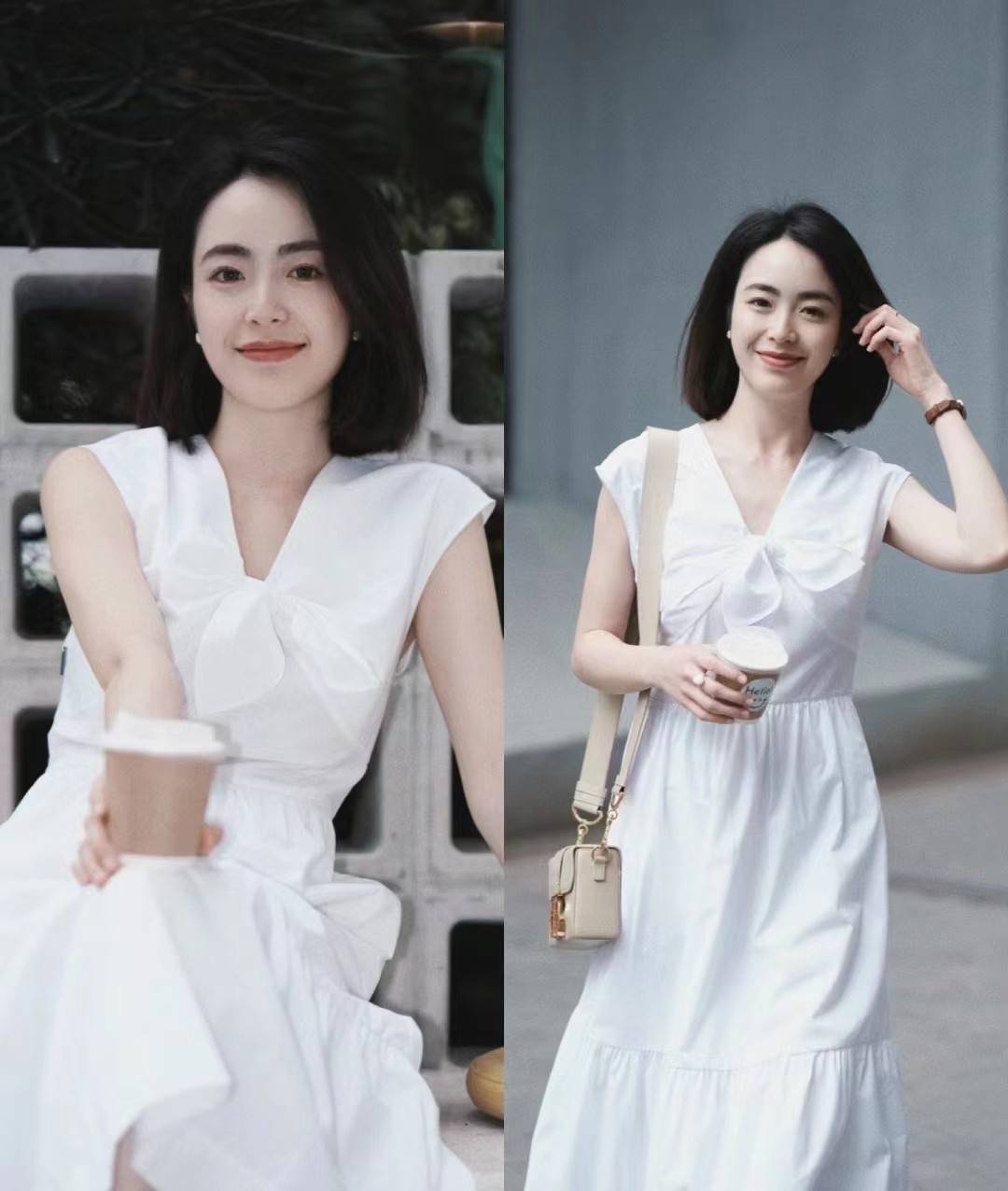 比如这条白色的连衣裙,它就是看起来特别清爽的存在,而且有着永远不会过时的优点,不同年纪的女性都可以将它穿出同样的简约范儿。