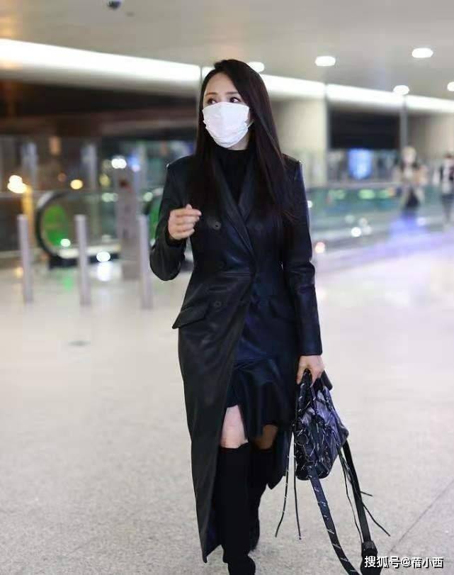除了常规的毛呢大衣,大家在冬天还可以试试皮革大衣,你看伊能静的这一身搭配,外面穿上一件中长款的皮质大衣,版型选了收腰款,整个人的比例看起来一点不输超模,再搭配一条黑色连衣裙,配合黑色长筒靴,露出小部分的腿部线条,看起来很轻盈,又不会因露肤过多显得刻意。