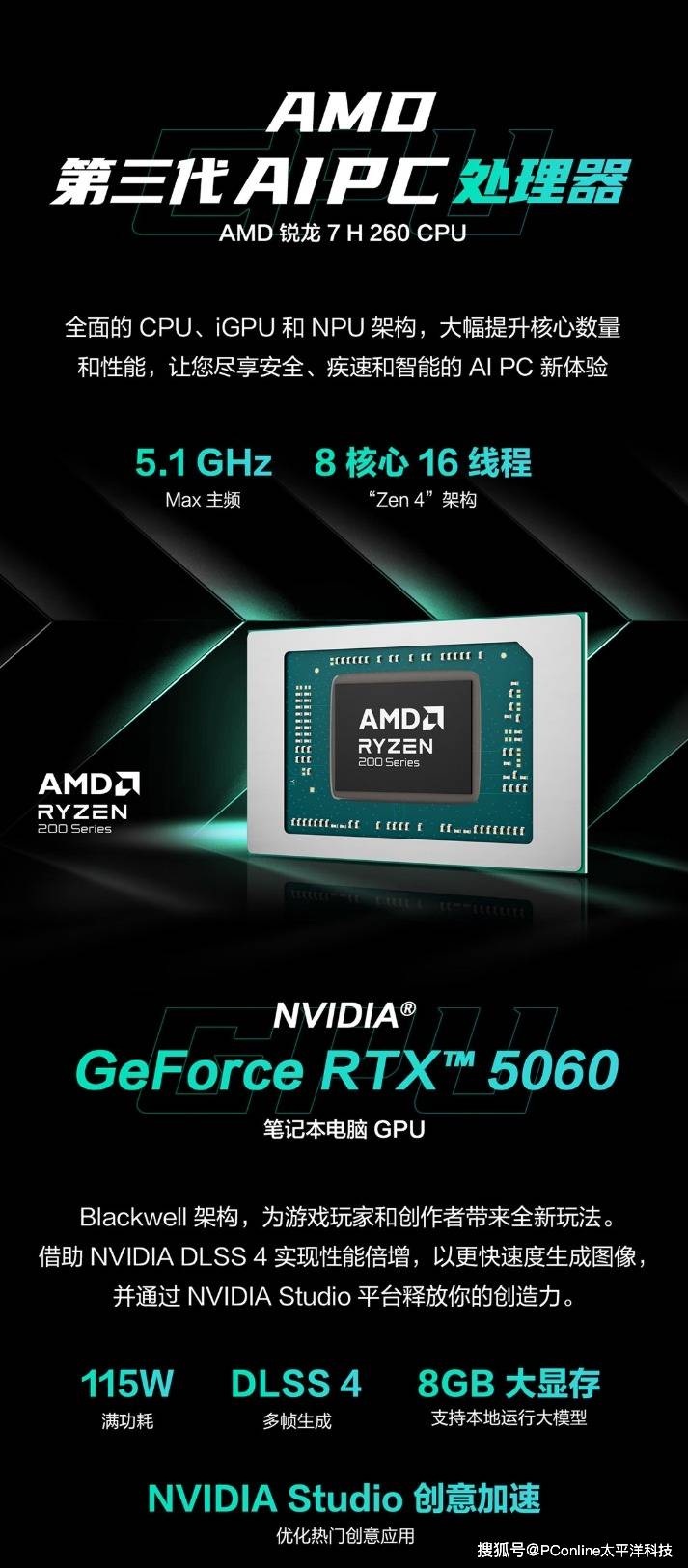 预算不高的情况下,GPU可直接认准RTX 5060 Laptop GPU。作为新一代主流GPU,采用最新架构和工艺打造,还支持光线追踪和DLSS 4技术,性价比远超上一代。