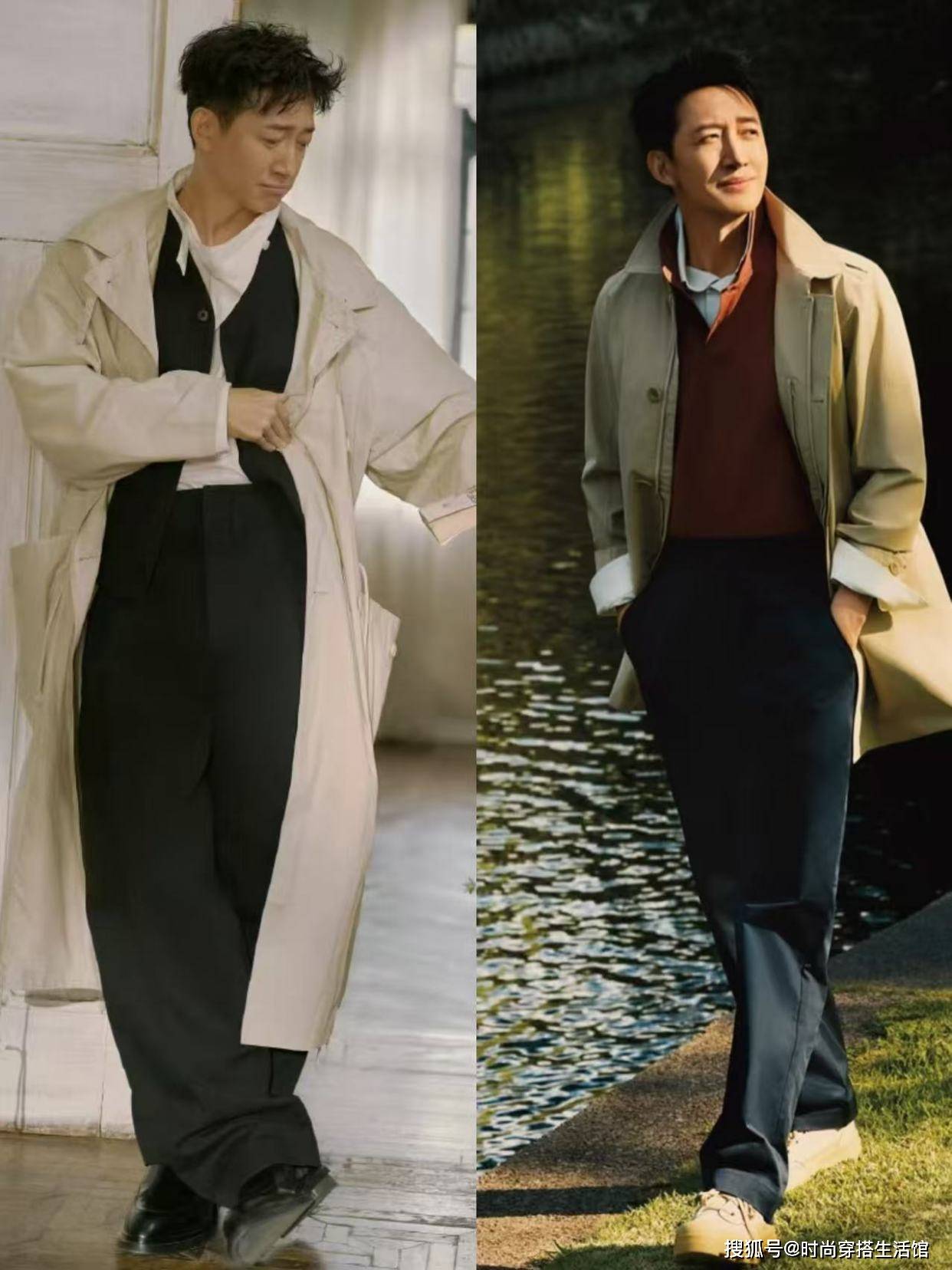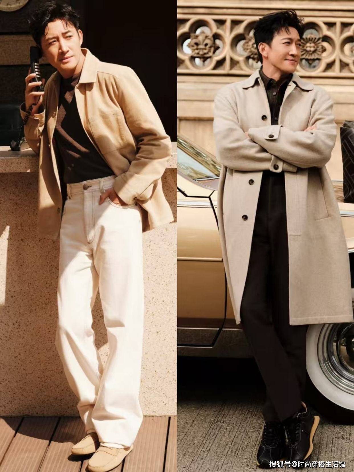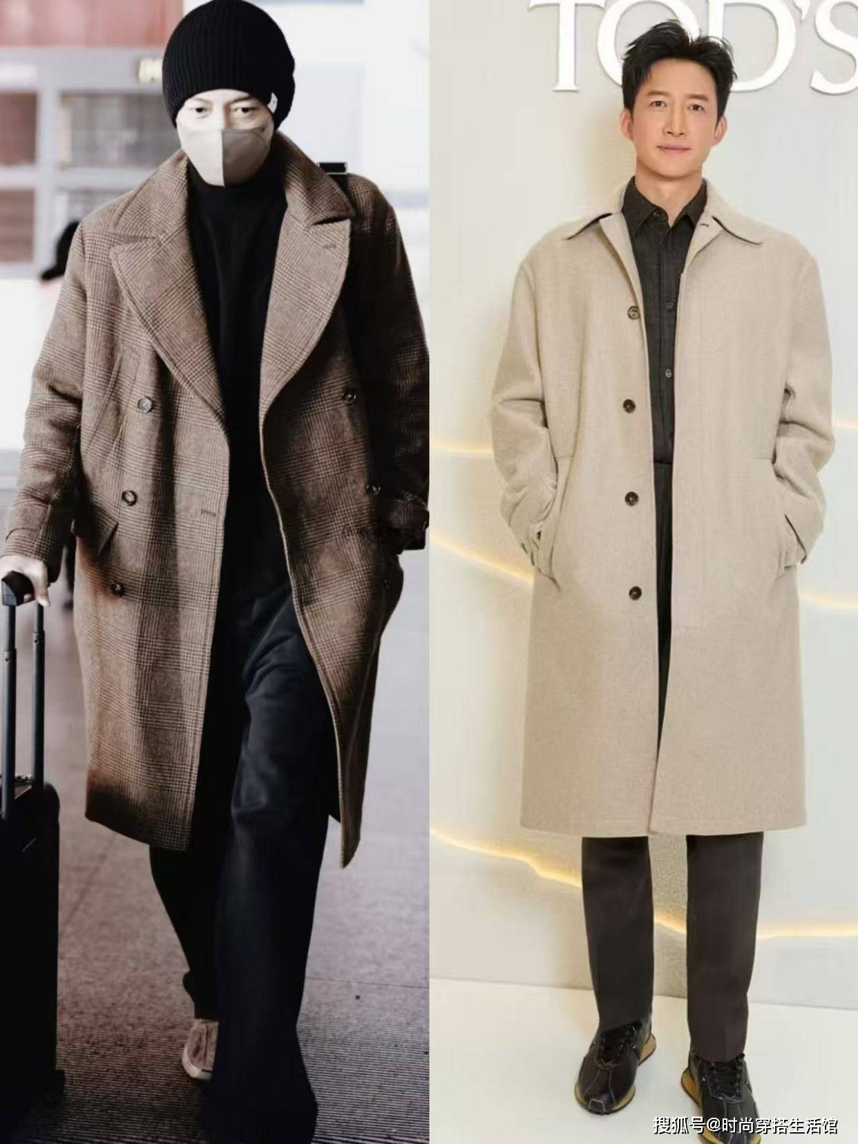 大衣是冬天出镜率最高的单品,对于中年男性来说选择穿大衣完全不用担心会出错,我们可以观察王阳穿的这件大衣不仅款式和版型都非常的简约,颜色和设计上都没有花里胡哨的元素,超级贴合中年男人帅气感,此外我们在选择大衣版型尽量以H型为主,这样才能有利于修饰身材,挑选过膝不过踝的长度不仅遮肉显瘦同时还不会压个子。